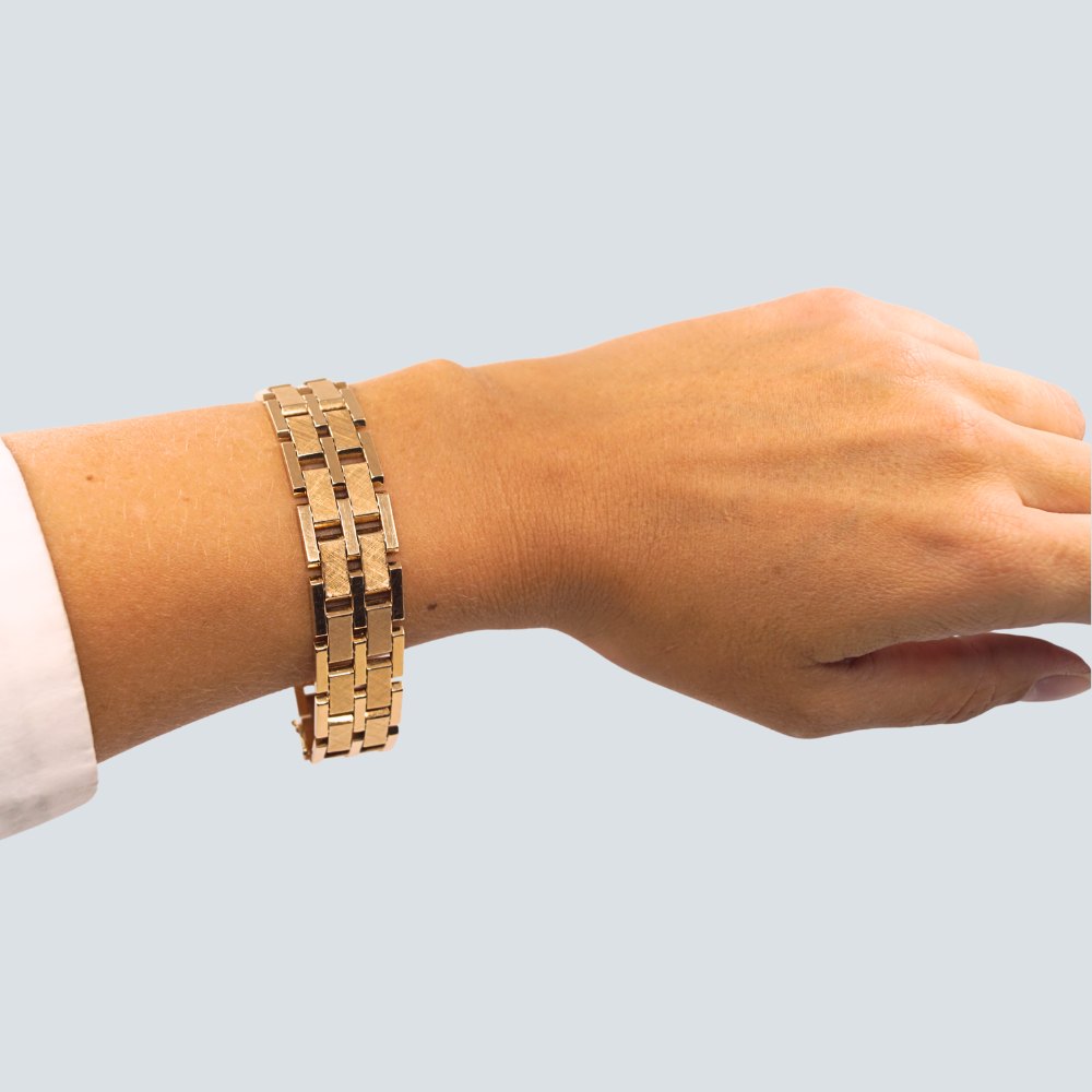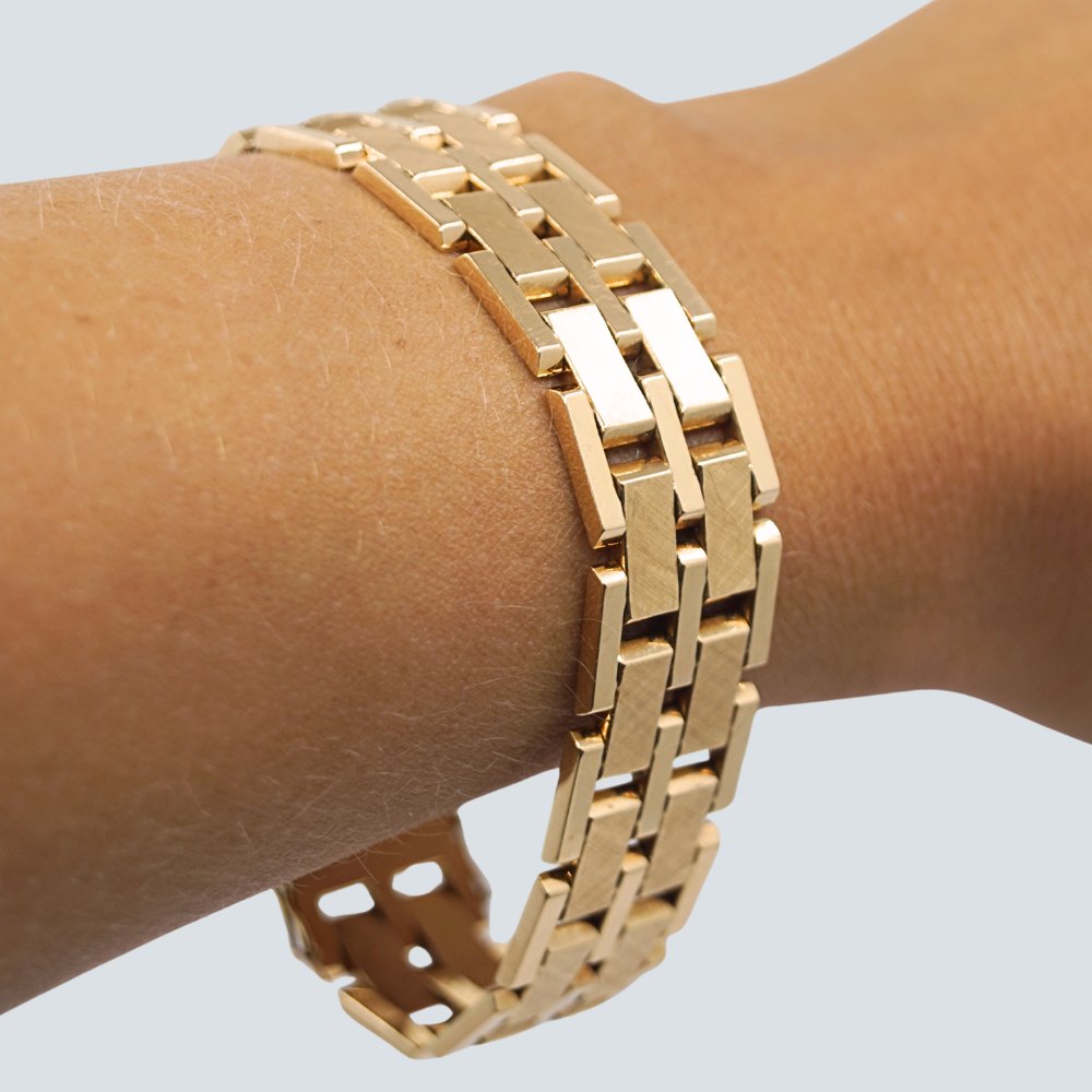 Blok armbånd af 14 kt. guld, delvist satineret.