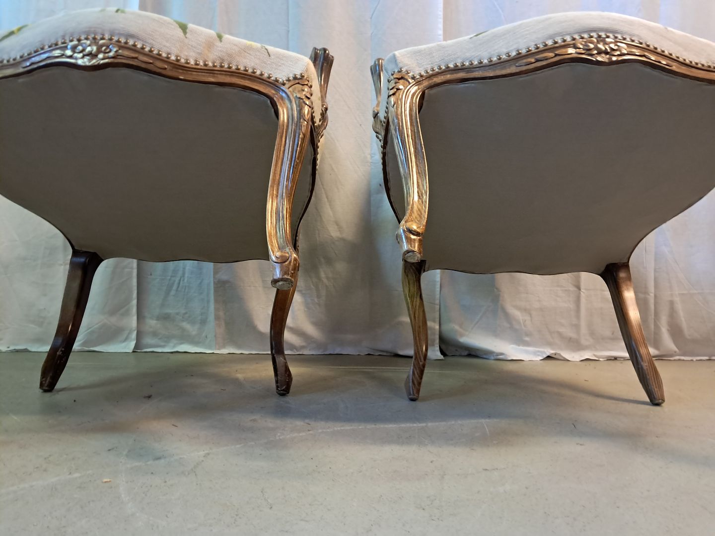 2 Armstole i massivt bøgetræ med broderet betræk, fra 1950erne.