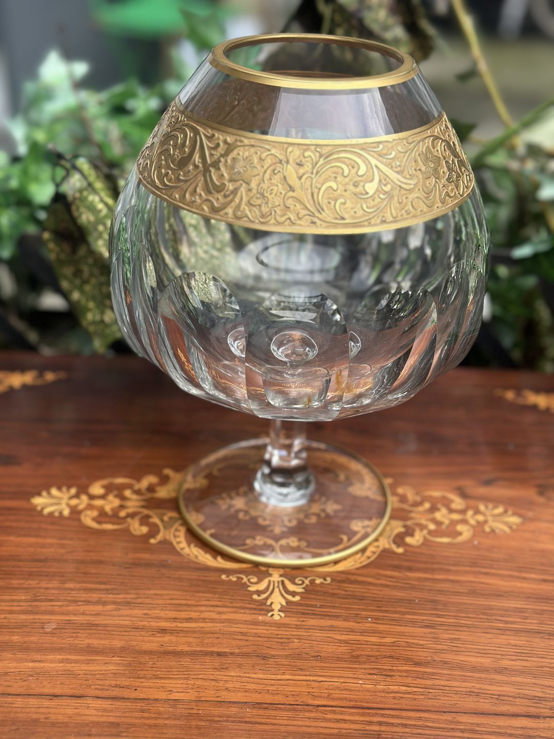 Moser glas pokal krystal , meget høj kvalitet fra midten af 1900 tallet , bredt bånd af forgyldt 24k guldemalje med indgraverede blomster i klassisk barok