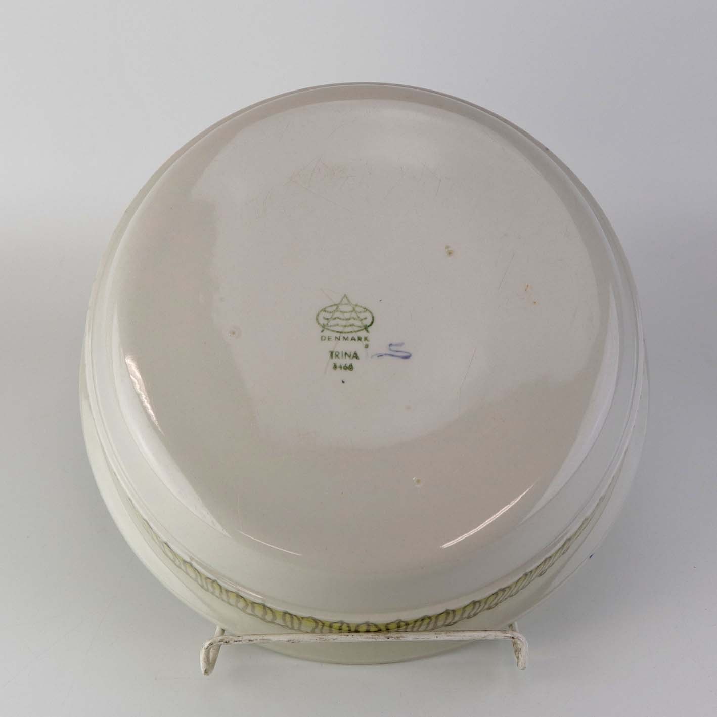 Kartoffelskål i kongelig fajance fra stellet Grøn Trina. Nr. 3466