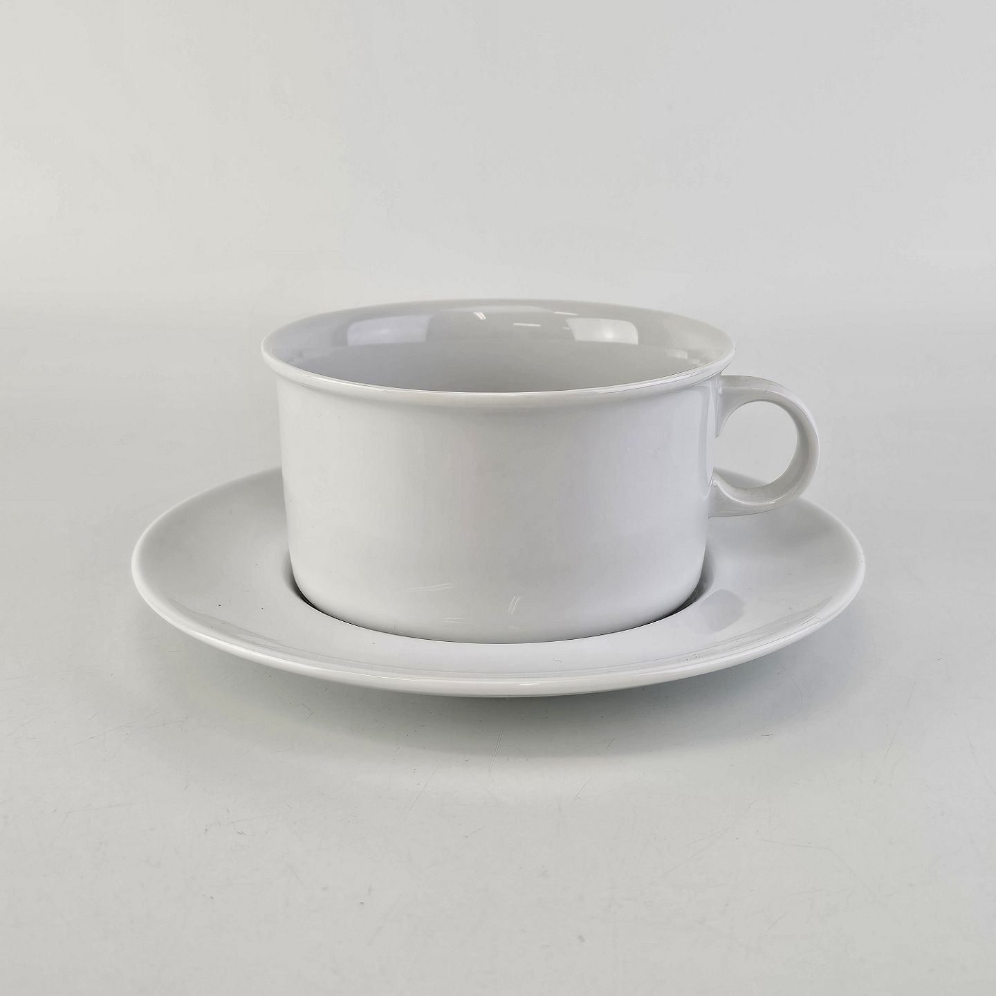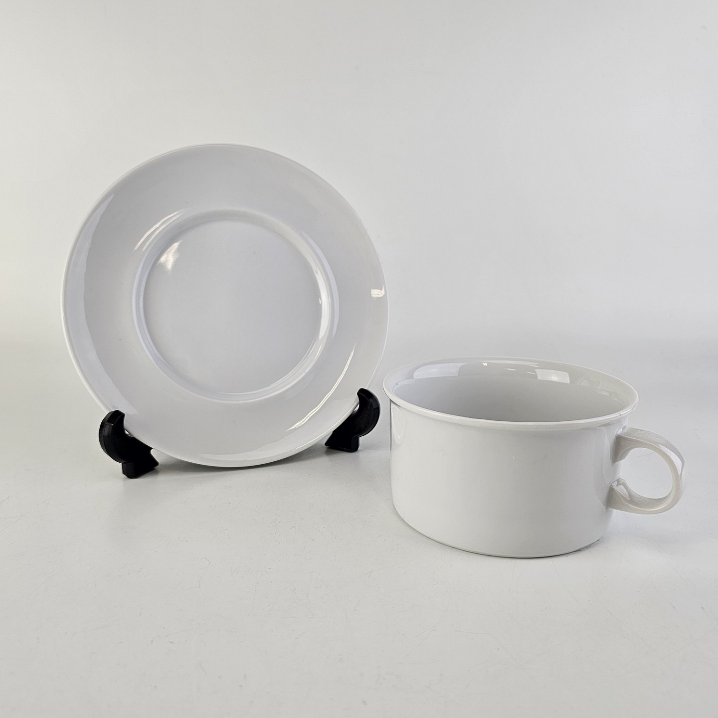 Kaffekop med underkop i glat hvidt porcelæn fra stellet Hvid Domino