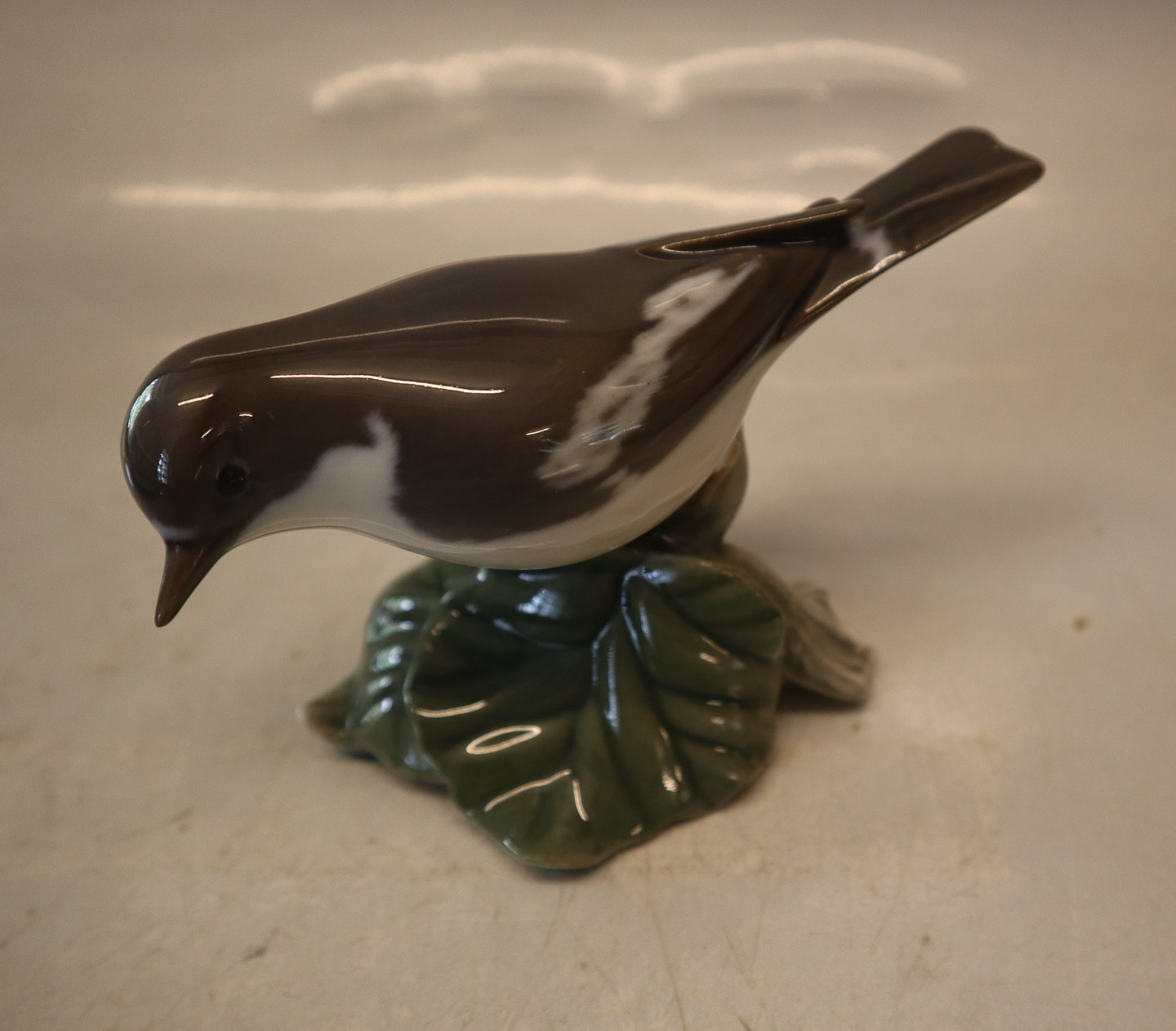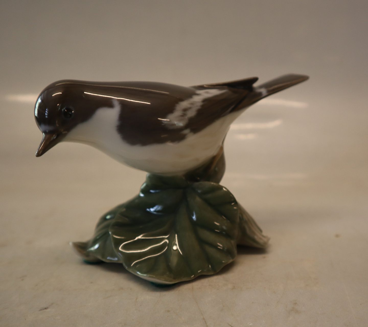 2144 Kgl. Fluesnapper 8 x 13 cm Platten Hallermundt 1920 Fuglefigur i Porcelæn fra Royal Copenhagen I hel og fin stand