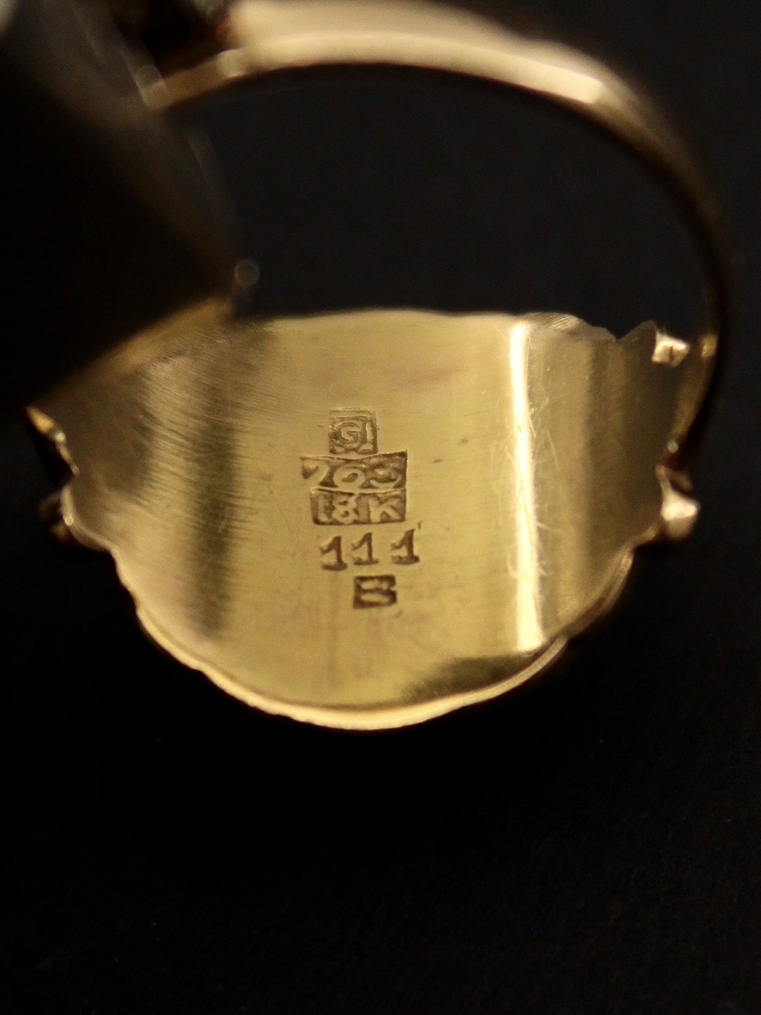 Georg Jensen 18 karat gold ring #111B size 56 with turquoise with stamp before 1945 item no. 623553