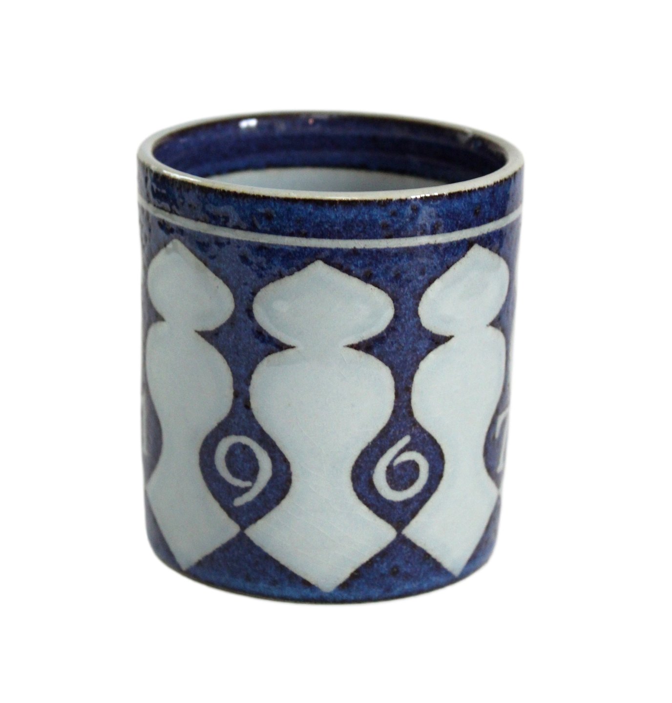 Aluminia, Lille årskrus i kunstfajance. Designer Nils Thorson. Dette er det første årskrus. Nr. 3495. Årskrus er produceret fra perioden 1967 til 2014, fra 1968 er det Royal Copenhagen. Højde 7,5 cm. Diameter 6,8 cm. Lettere overfladekrakelering. Pris: 700 kr. stk. Lager: 1