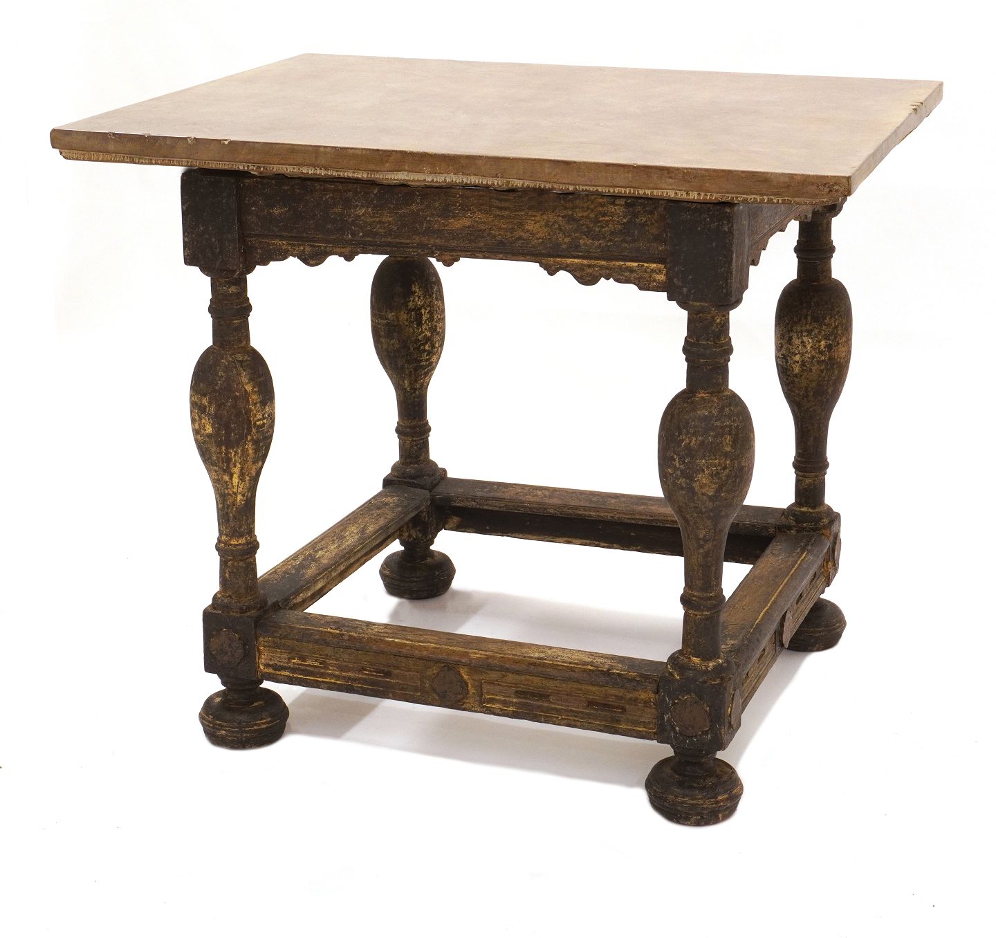 Sort dekoreret barokt bord med grålig stenplade