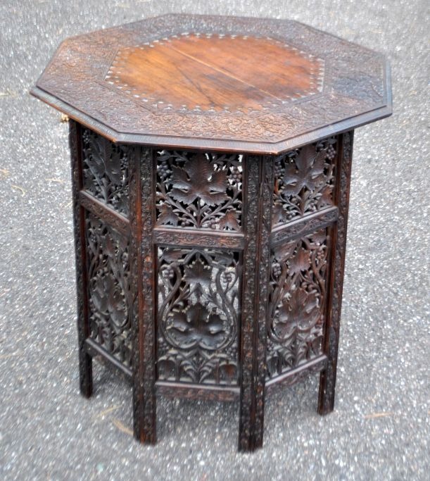Arabisk ottekandet rygebord med talrige skæringer, 19. årh. Bejdset træ. H.: 64 cm. B.: 60 cm.