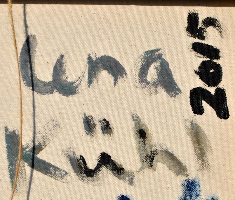 Kühl, Lena (1950 -) Danmark: Komposition, 2015. Akryl på lærred. Signeret: Lena Kühl 2015. H: 30 cm. B: 30 cm.