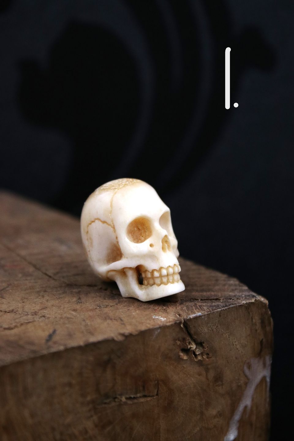 Gamle, dekorative mini kranier udskåret i horn / ben...