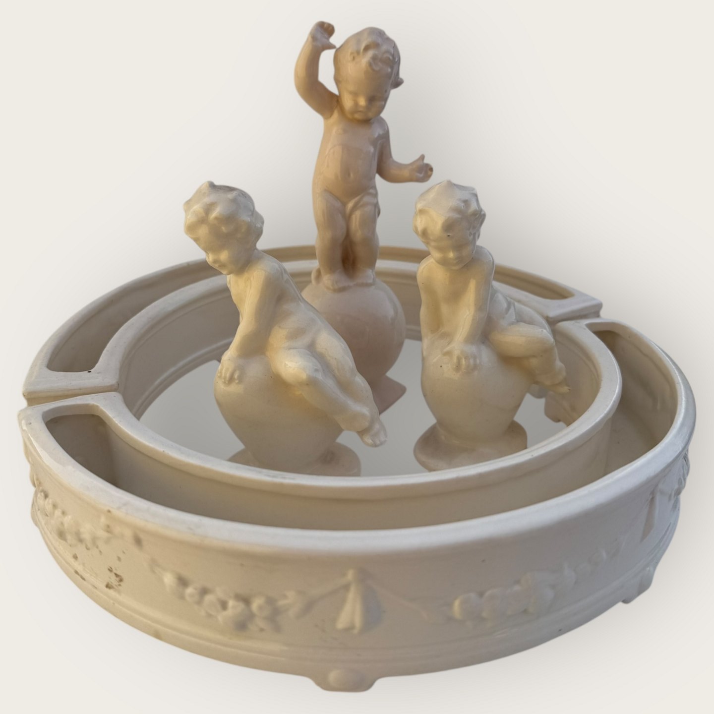 Centerpiece, Faience table tableau with figures, Cream white faience, *Good used condition, with a few very small chips*