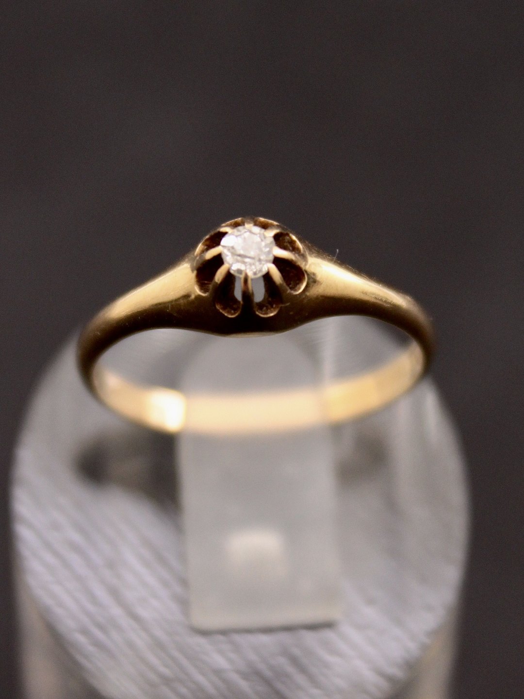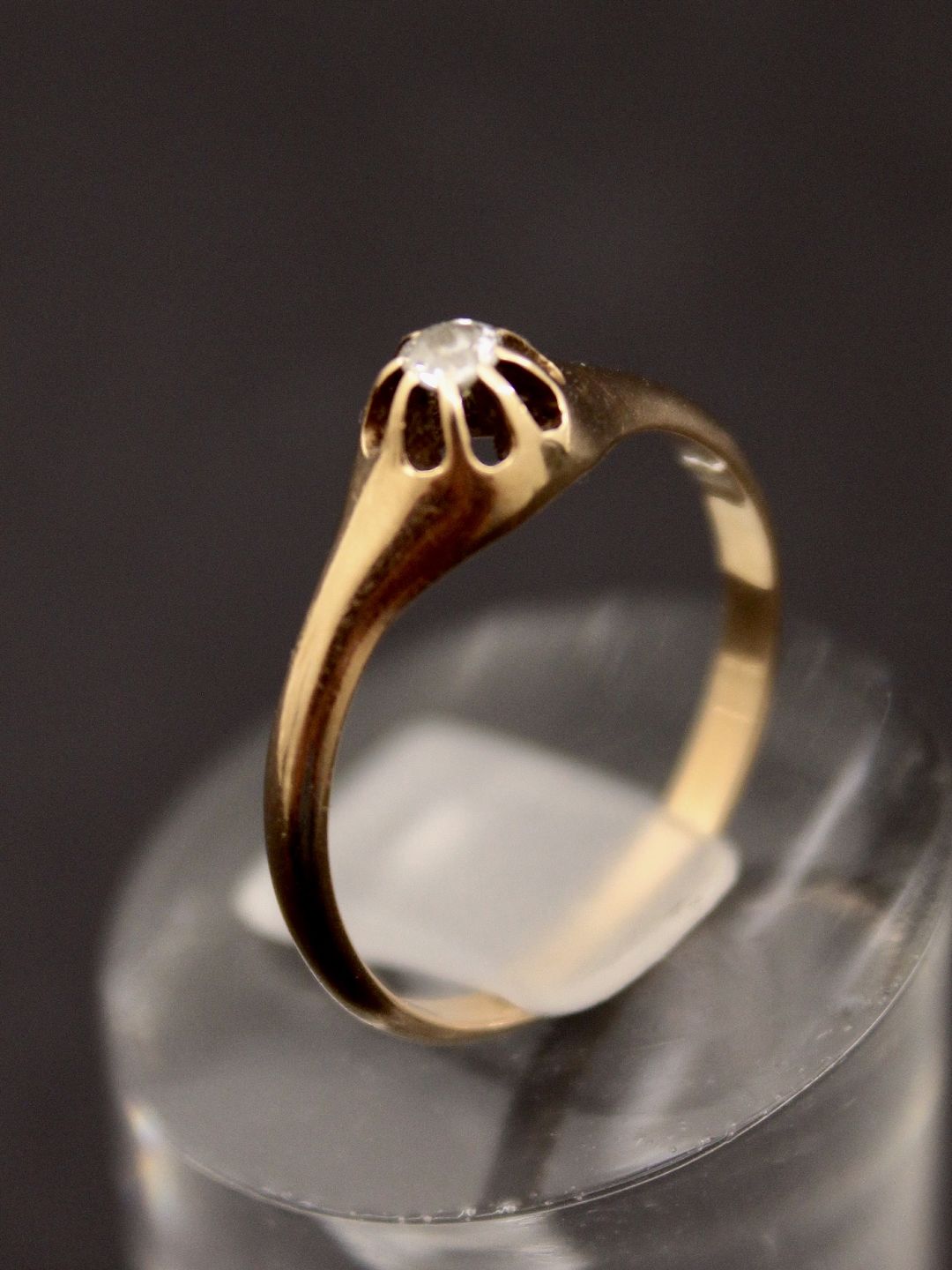 14 carat gold ring size 53 with diamond stamped 585 HE for goldsmith H Eilersen Copenhagen item no. 624686