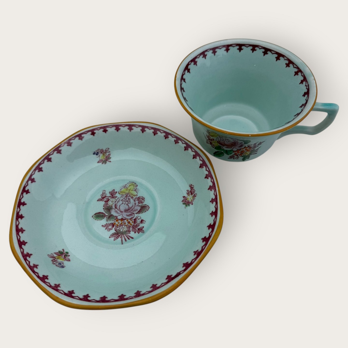 Adams Calyx Ware, Chelsea Sprays red, Small teacup, approx. 6.5cm high and 9.5cm in diameter *Good used condition*