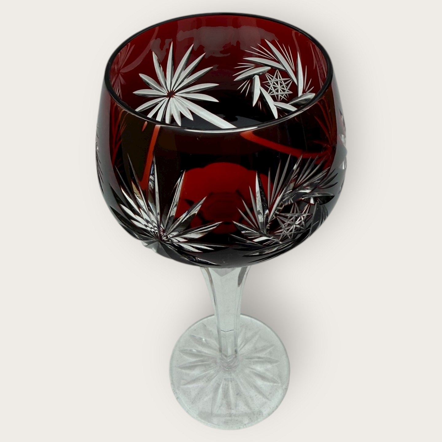 Bøhmisk krystal glas, Vin glas med slibninger, Bordeaux, 19,5cm høj, 8cm i diameter *Perfekt stand*