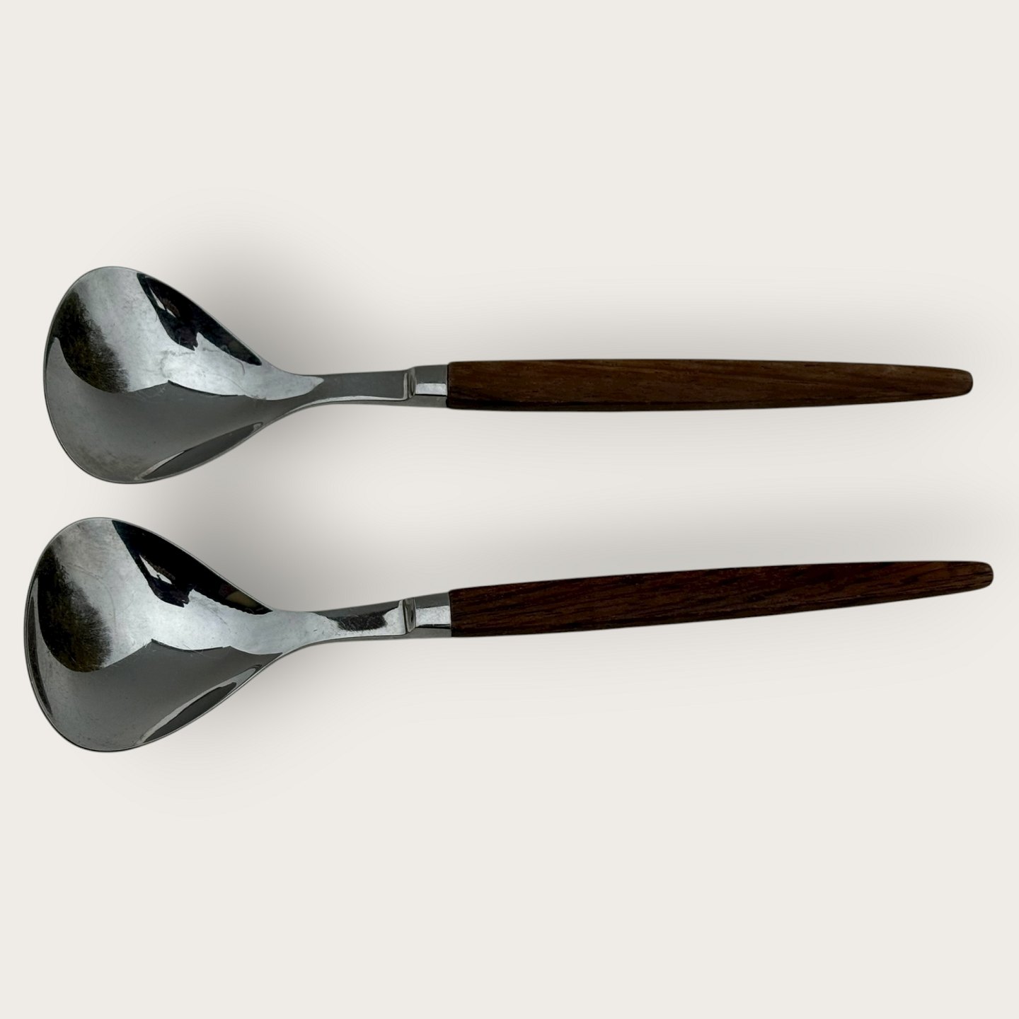 Raadvad, salatsæt i teaktræ og stål fra 1960'erne, 22cm langt *pæn brugt stand*