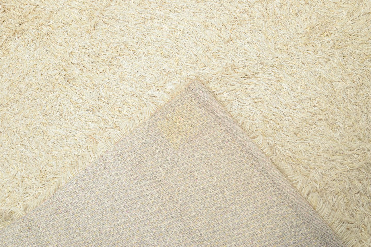 Hand-knotted rya carpet in natural white wool, produced by Blekinge Rya. A typical Scandinavian design from the period with a dense pile and minimalist expression, highlighting the warmth and tactile beauty of the material. The piece reflects the simple elegance and fine craftsmanship characteristic of Swedish textile design of the era.