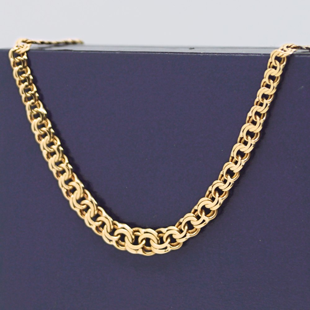 Bismarckhalskæde i forløb, 8 kt. guld. Monteret med kasselås samt to sikkerhedslåse.