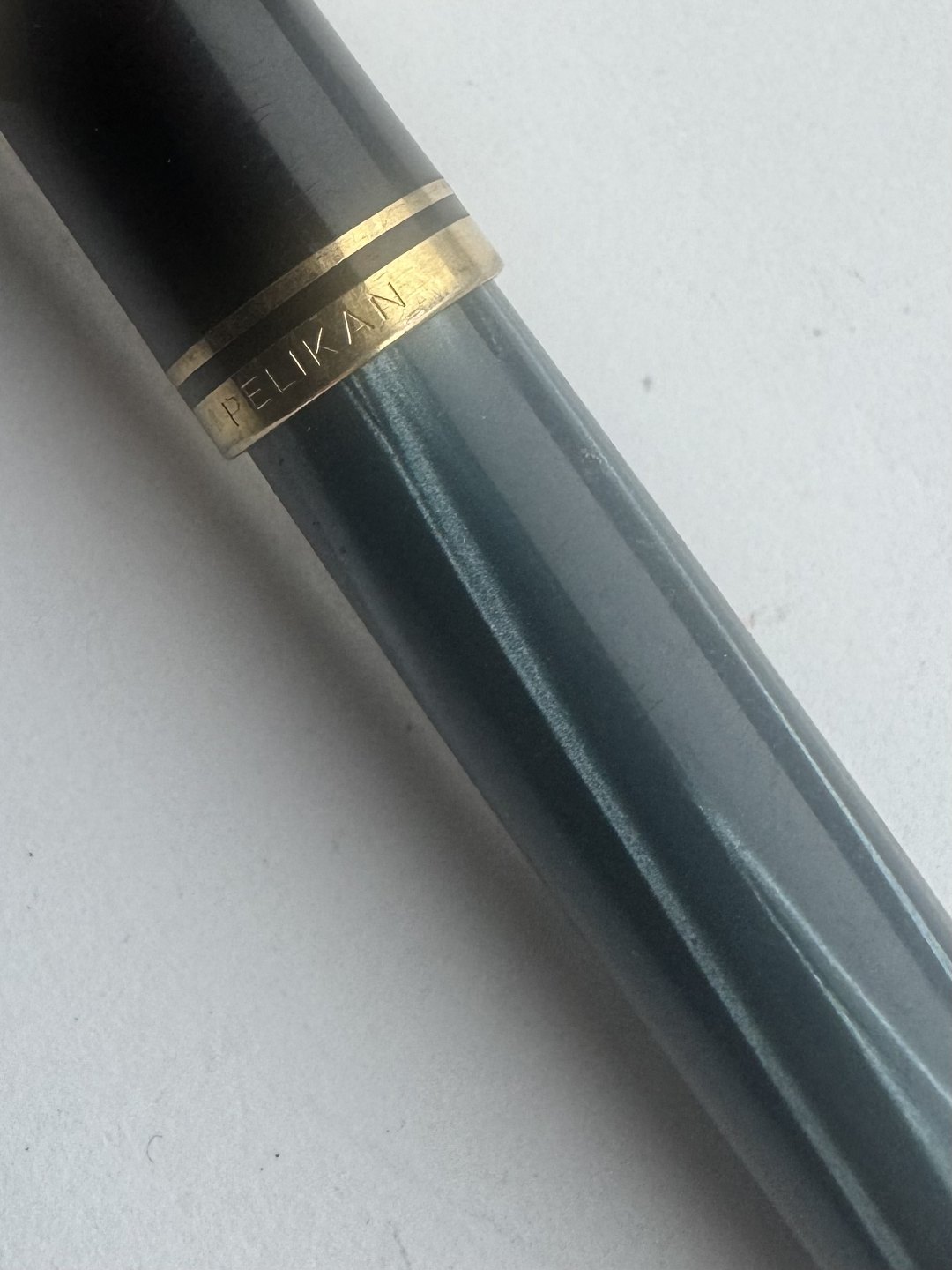 Pelikan M200 fyldepen. Fremstillet i Vest-Tyskland i 1970’erne. Den lille kapsel med logo på toppen af hætten har en revne (se foto). Eller i god funktionsduelig stand.