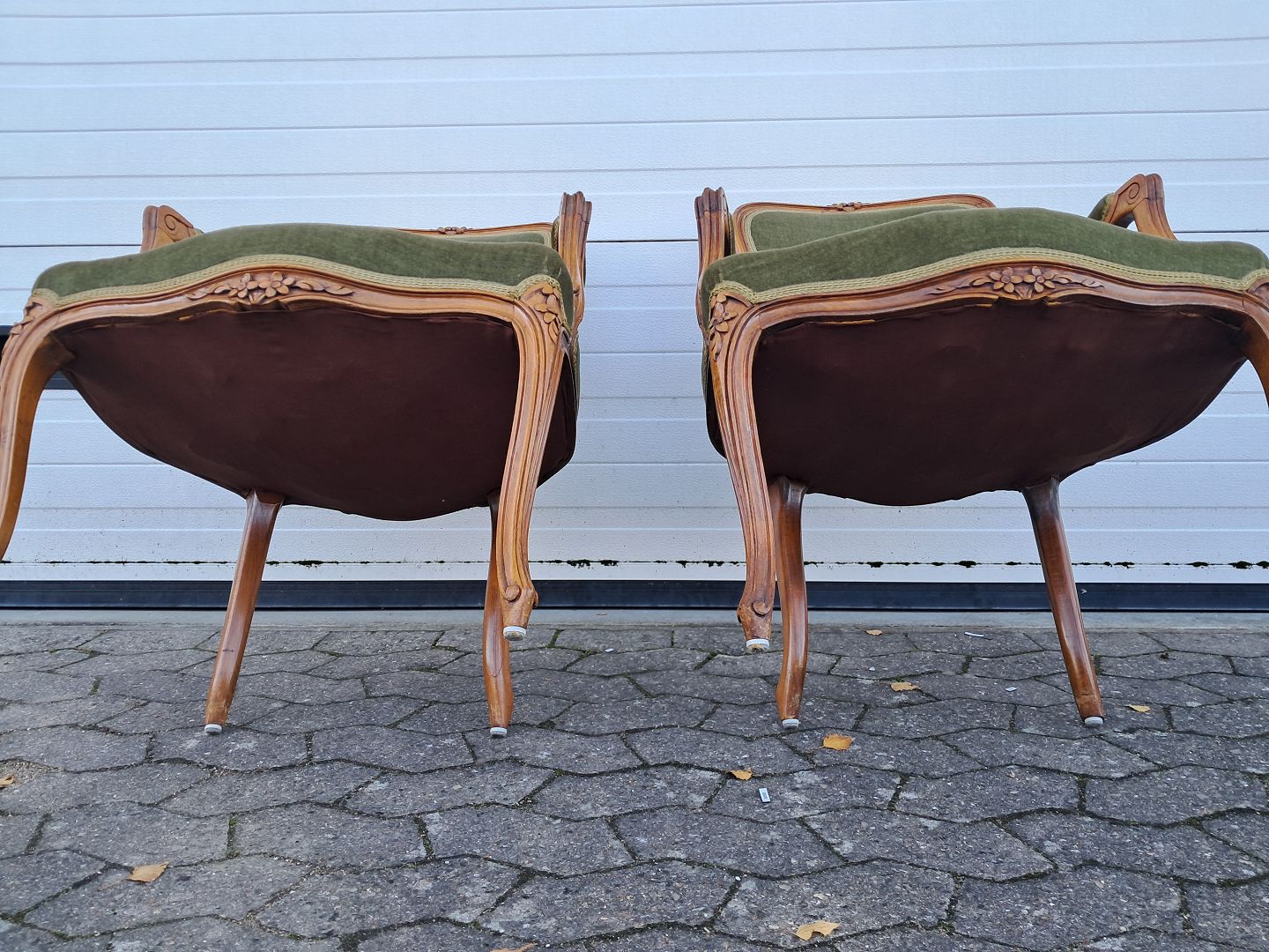 2 Rokokostole i massivt bøgetræ med velourbetræk, fra 1980erne.