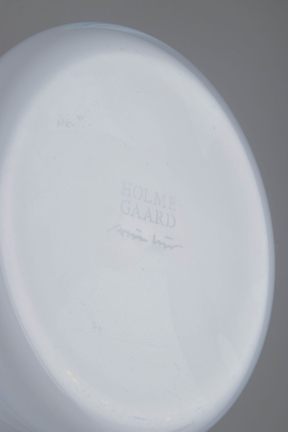 Elegant mundblæst vase i opalhvidt glas fra serien Karen Blixen, designet af Anja Kjær for Holmegaard. Karakteristisk bølget form med blød organisk silhuet. Original æske medfølger.