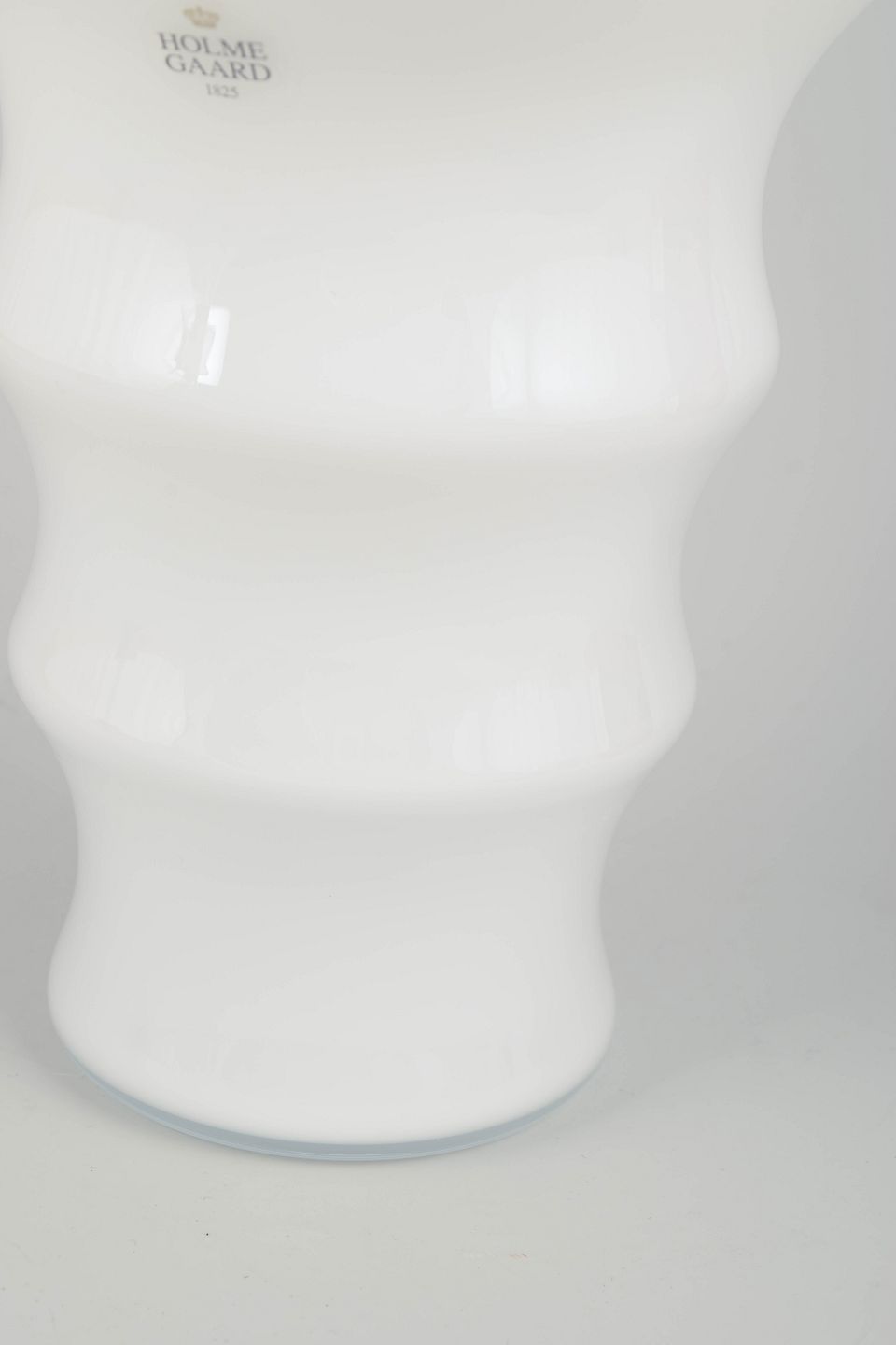 Elegant mundblæst vase i opalhvidt glas fra serien Karen Blixen, designet af Anja Kjær for Holmegaard. Karakteristisk bølget form med blød organisk silhuet. Original æske medfølger.