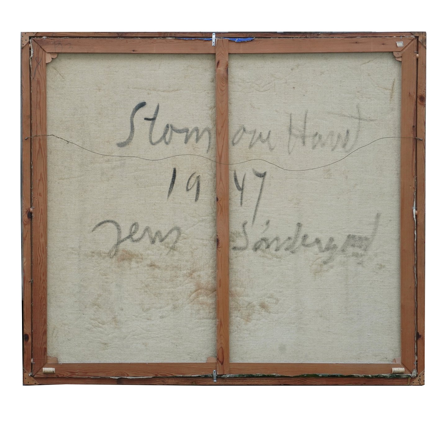 Jens Søndergaard maleri. Jens Søndergaard, 1895-1957, olie på lærred. Betitlet "Storm om Hav" og dateret 1947. Signeret. Lysmål: 128x147cm. Med ramme: 137x156cm