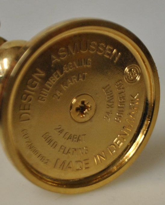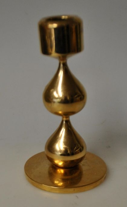 Asmussen drop candlestick, 20th century. Middelfart. Denmark. Gilded brass. Stamped. Height: 12 cm. With two drops.