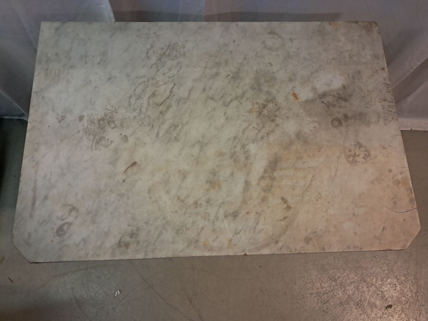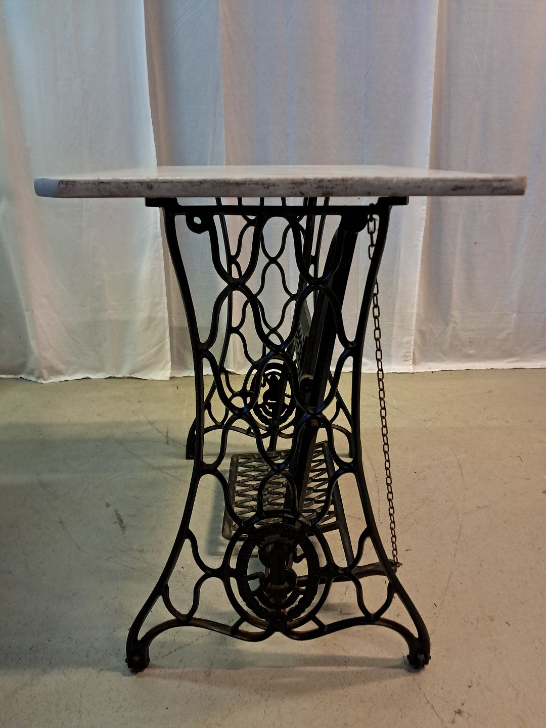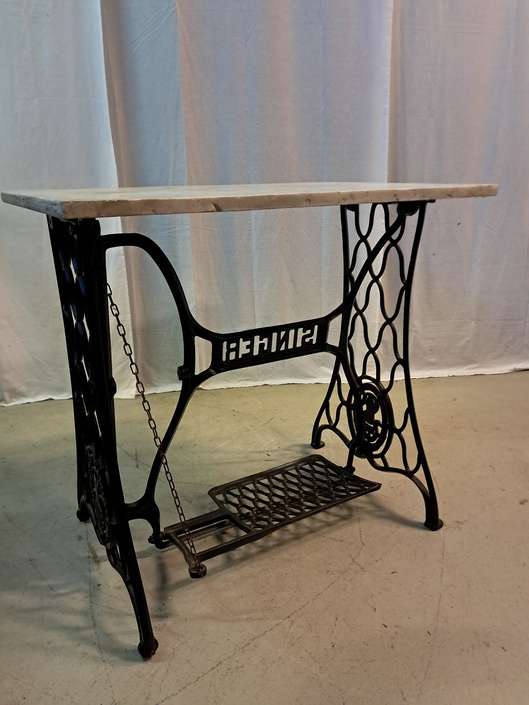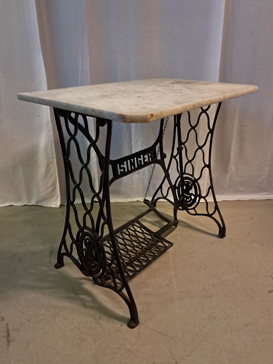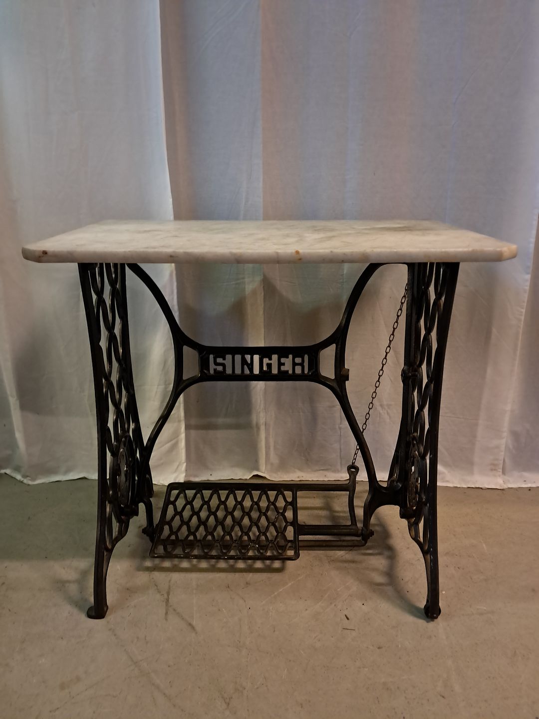 Singer symaskine-understel i metal med marmorplade, fra 1920erne.