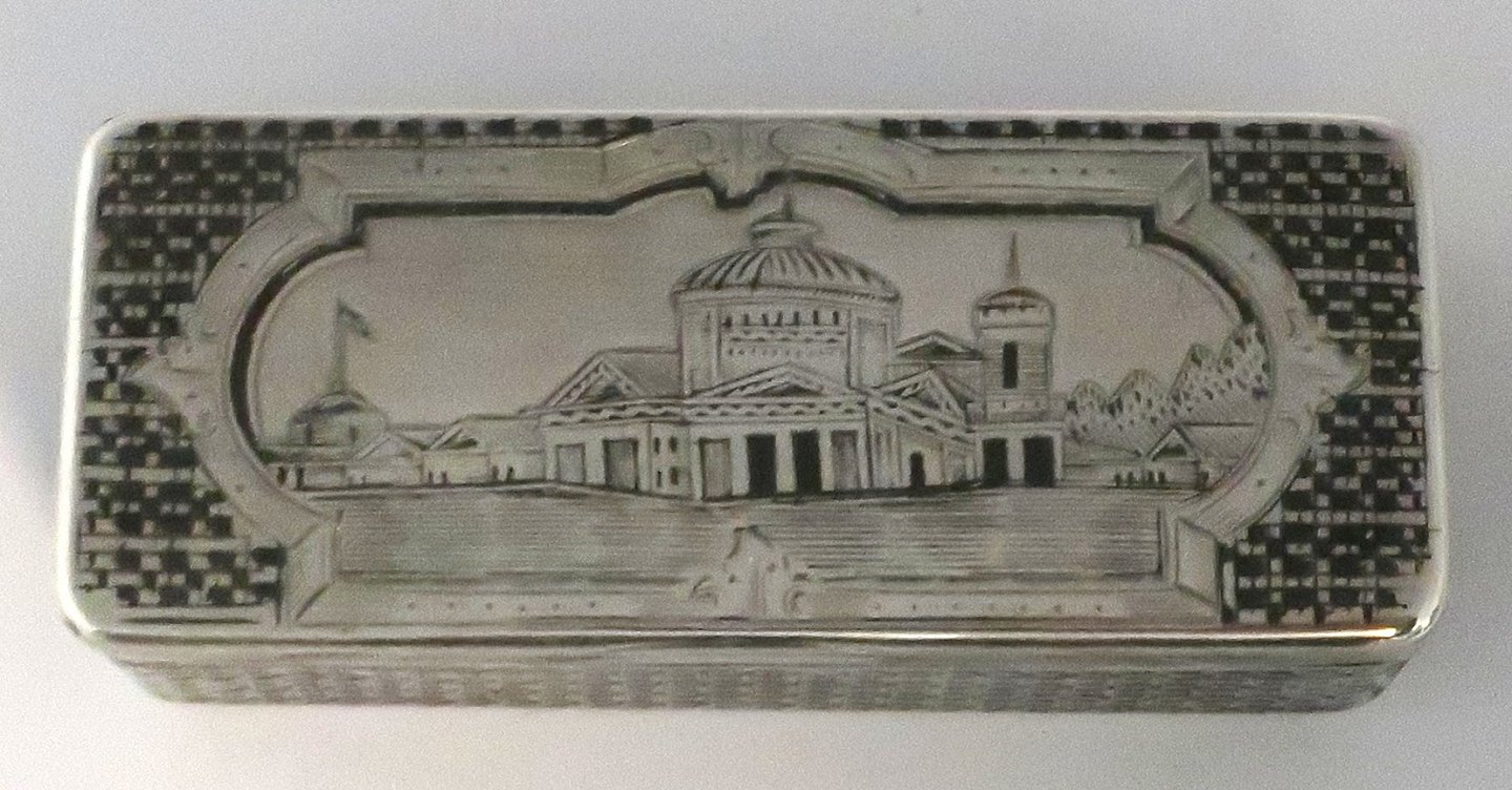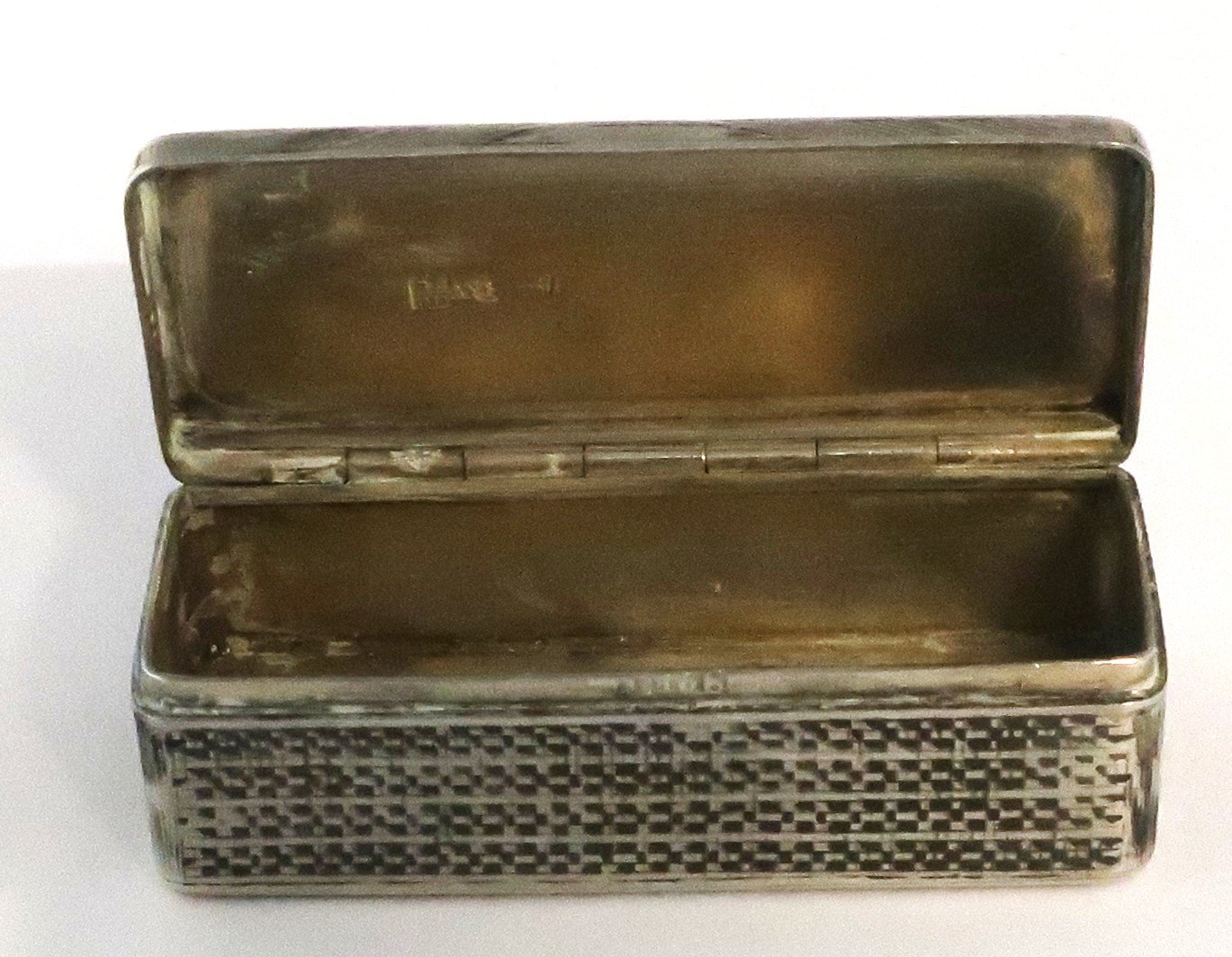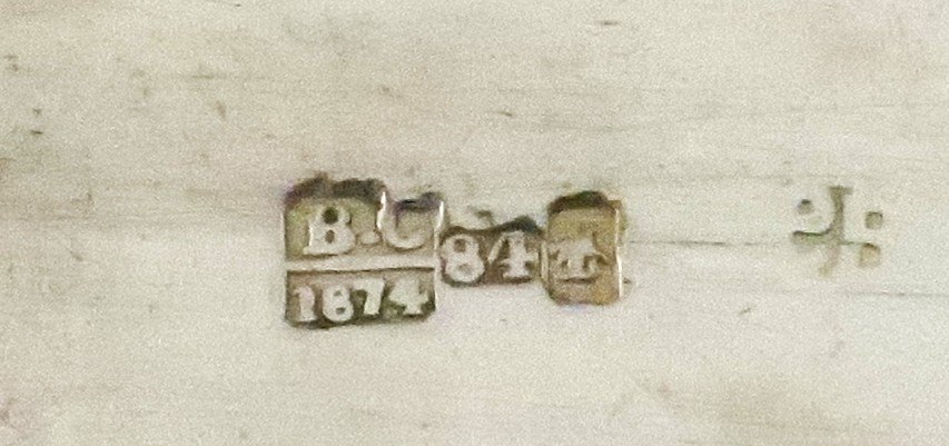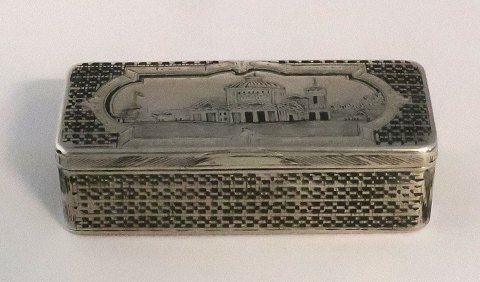 Lille russisk sølvæske med niello 84 (875). Længde 8 cm. Bredde 3 cm. Produceret 1874.