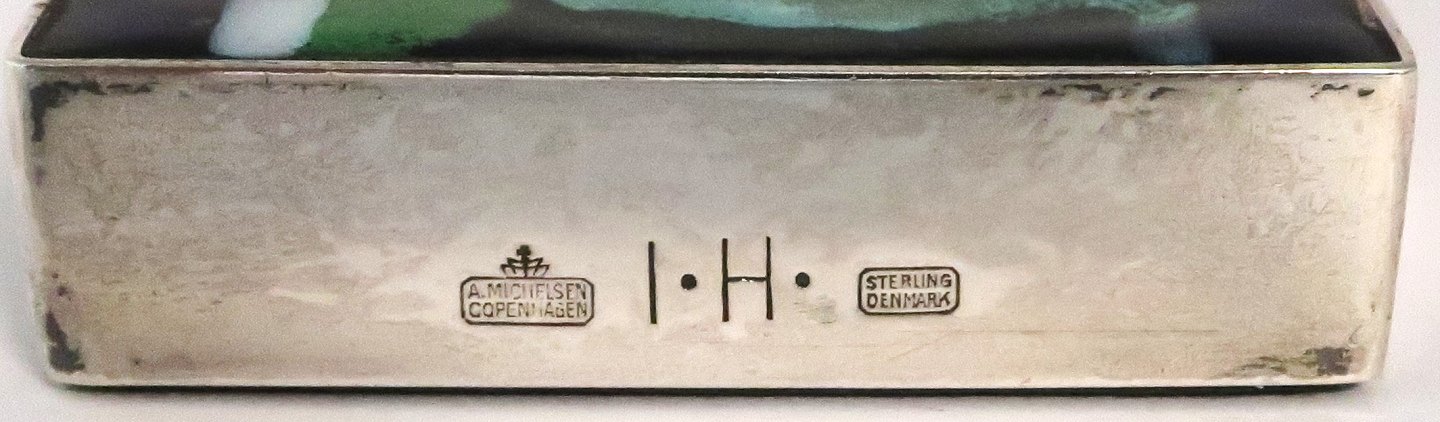Michelsen. Sterling sølv brevvægt med emalje (925). Inger Hanmann. Længde 13,2 cm. Bredde 6 cm.