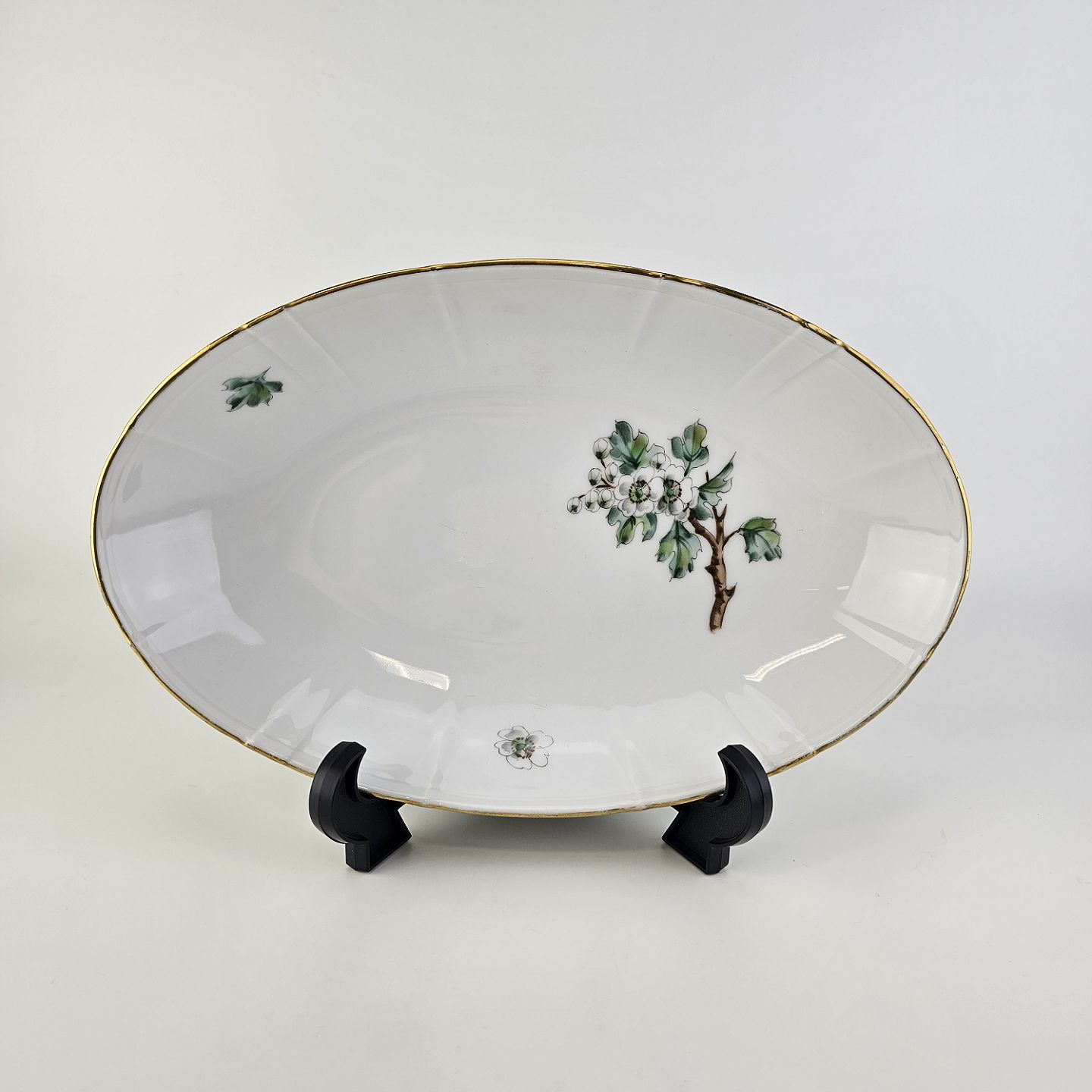 Eremitage er porcelæn dekoreret med hvidtjørn og guldkant
