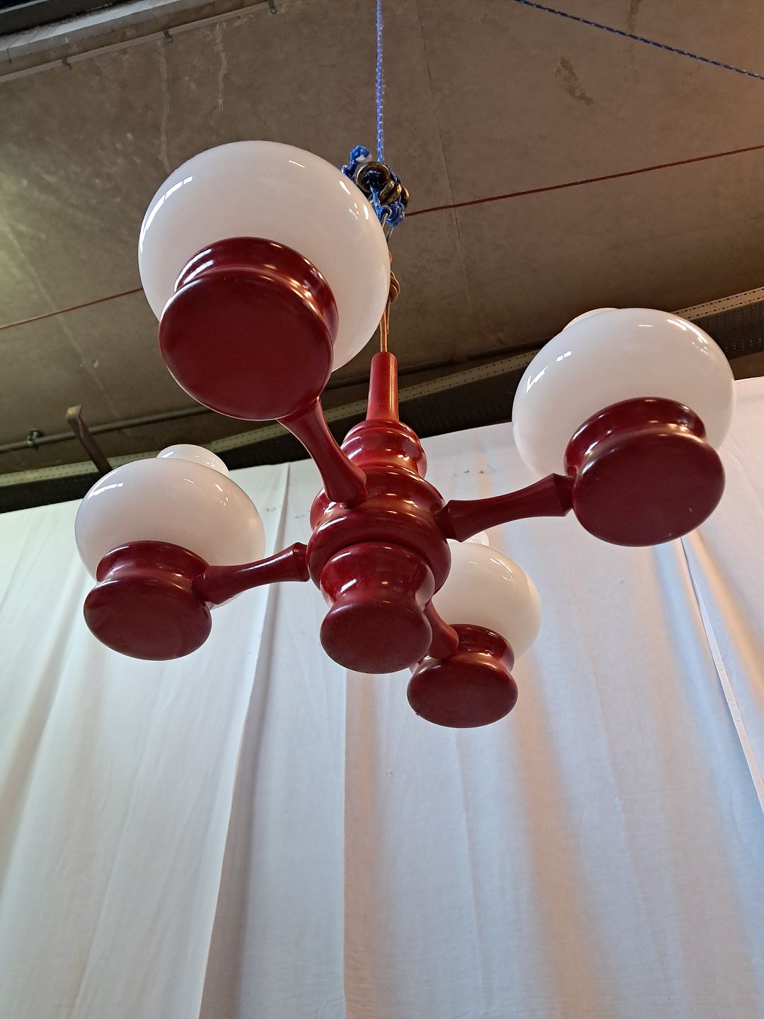 Malet loftlampe med 4 glasskærme, fra 1980erne.