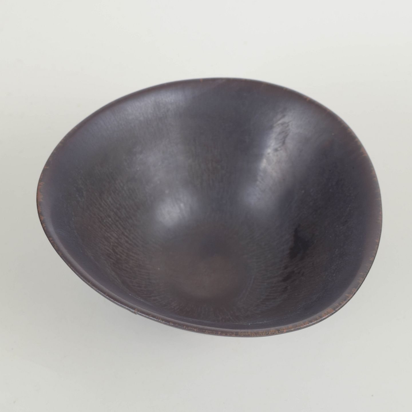 Elegant kegleformet skål i stentøj med mat, mørk glasur i gråbrune toner og diskret fod. Et fint eksempel på Stålhane’s minimalistiske formsprog og præcise proportioner.