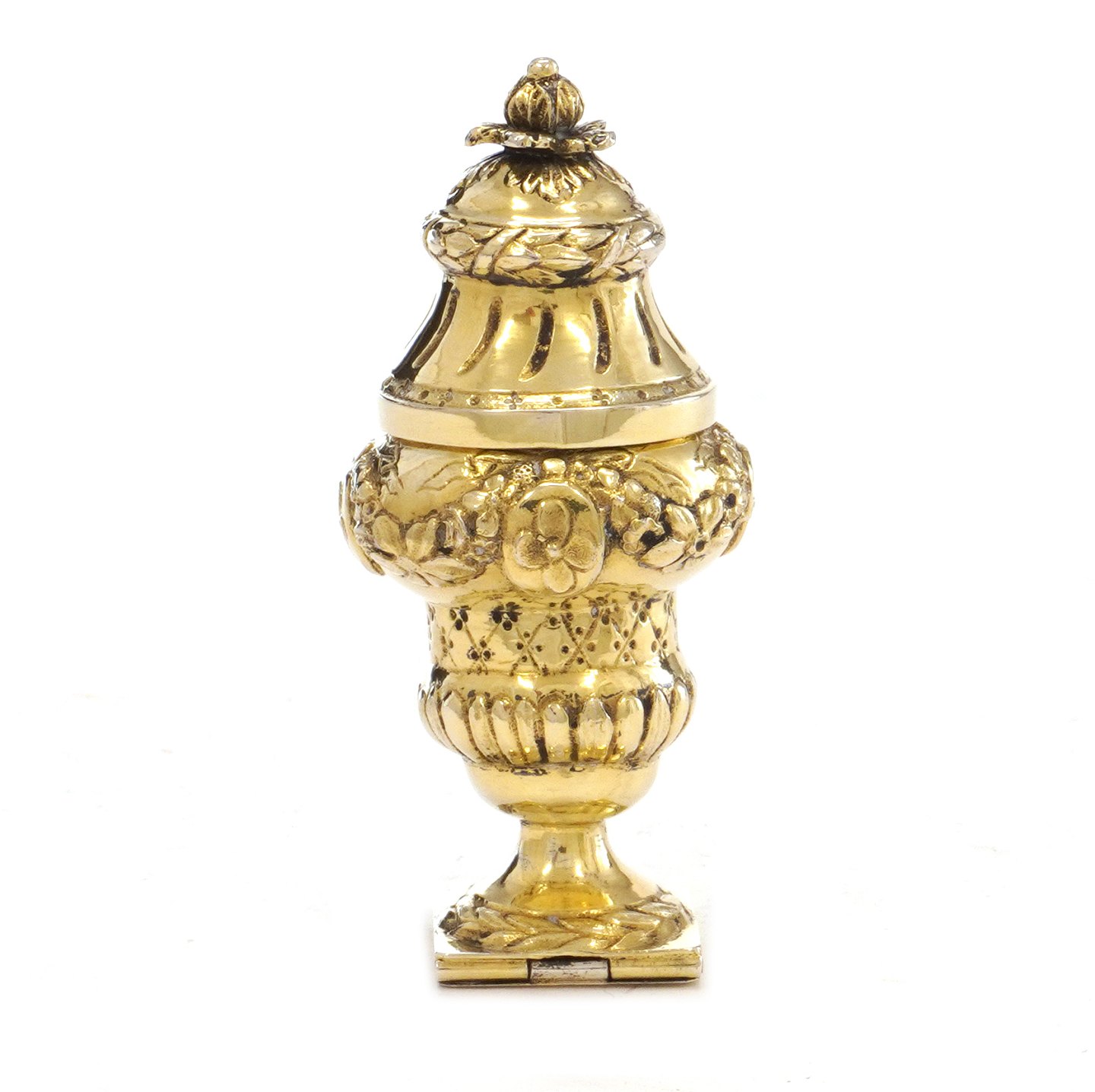 Hovedvandsæg i delvist forgyldt sølv af Christian Nielsen Lindbach, 1767-1815, København. H: 7,6cm |