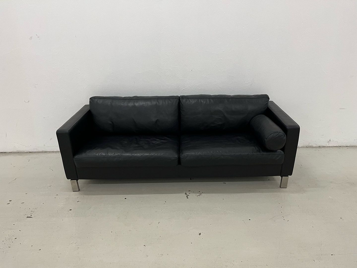 Mogens Hansen MH321. 3 Pers. Sofa i sort Premium læder gruppe 2 og med ben i børstet stål.