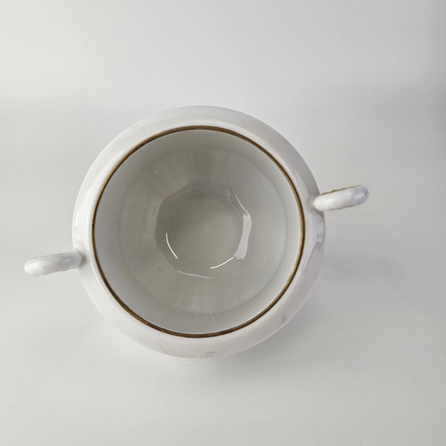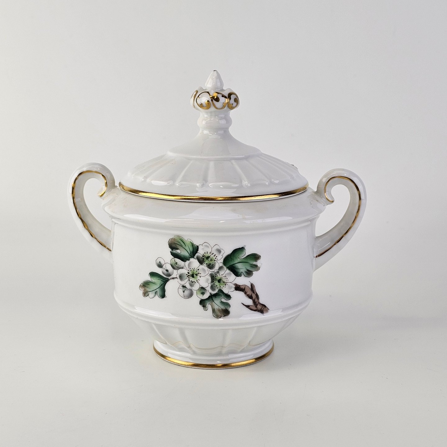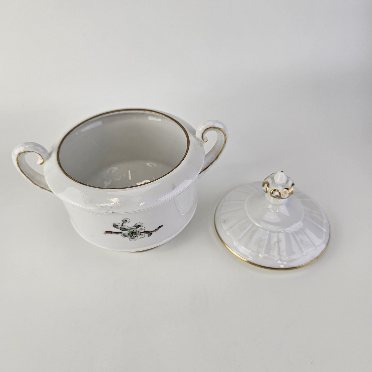 Eremitage er porcelæn dekoreret med hvidtjørn og guldkant