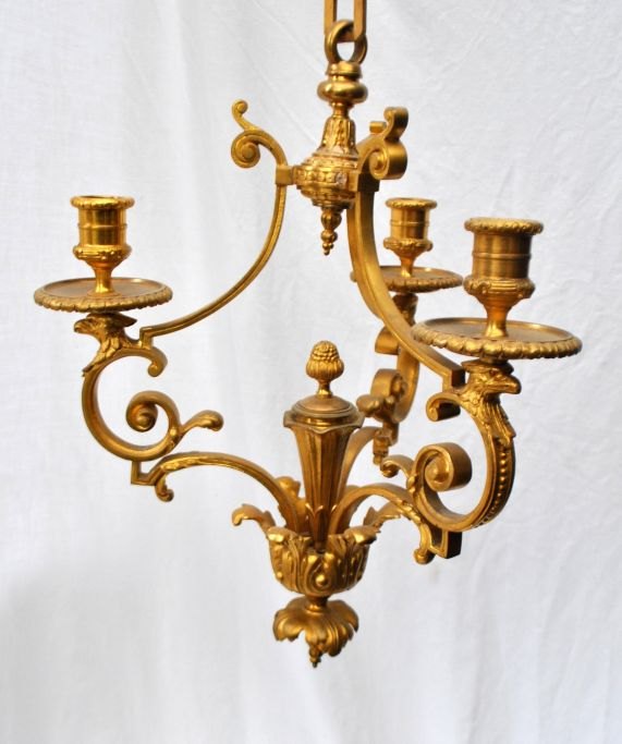 Fransk lueforgyldt bronzekrone med tre lys, 19. Årh.