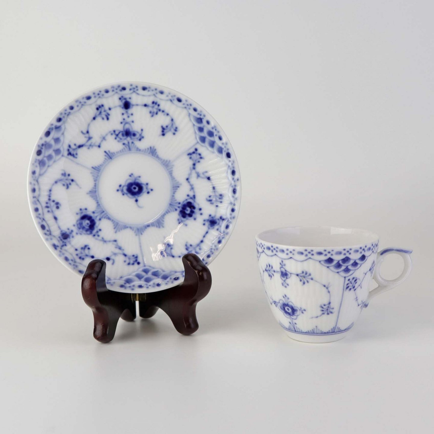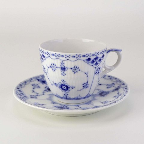 Mokkakop med underkop i kongeligt porcelæn fra stellet Musselmalet Halvblonde. Nr. 1/528