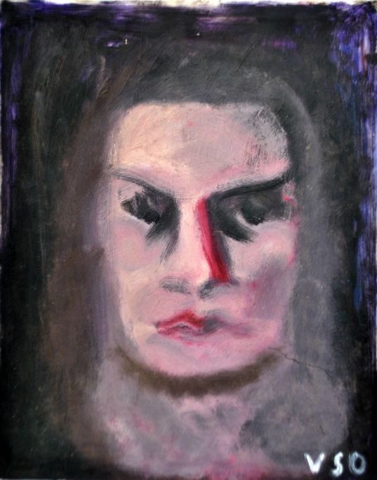 Olsen, William Skotte (1945 - 2005) Denmark: Portrait. Oil on plexiglass. Signed. Verso also a portrait. 50 x 40 cm.