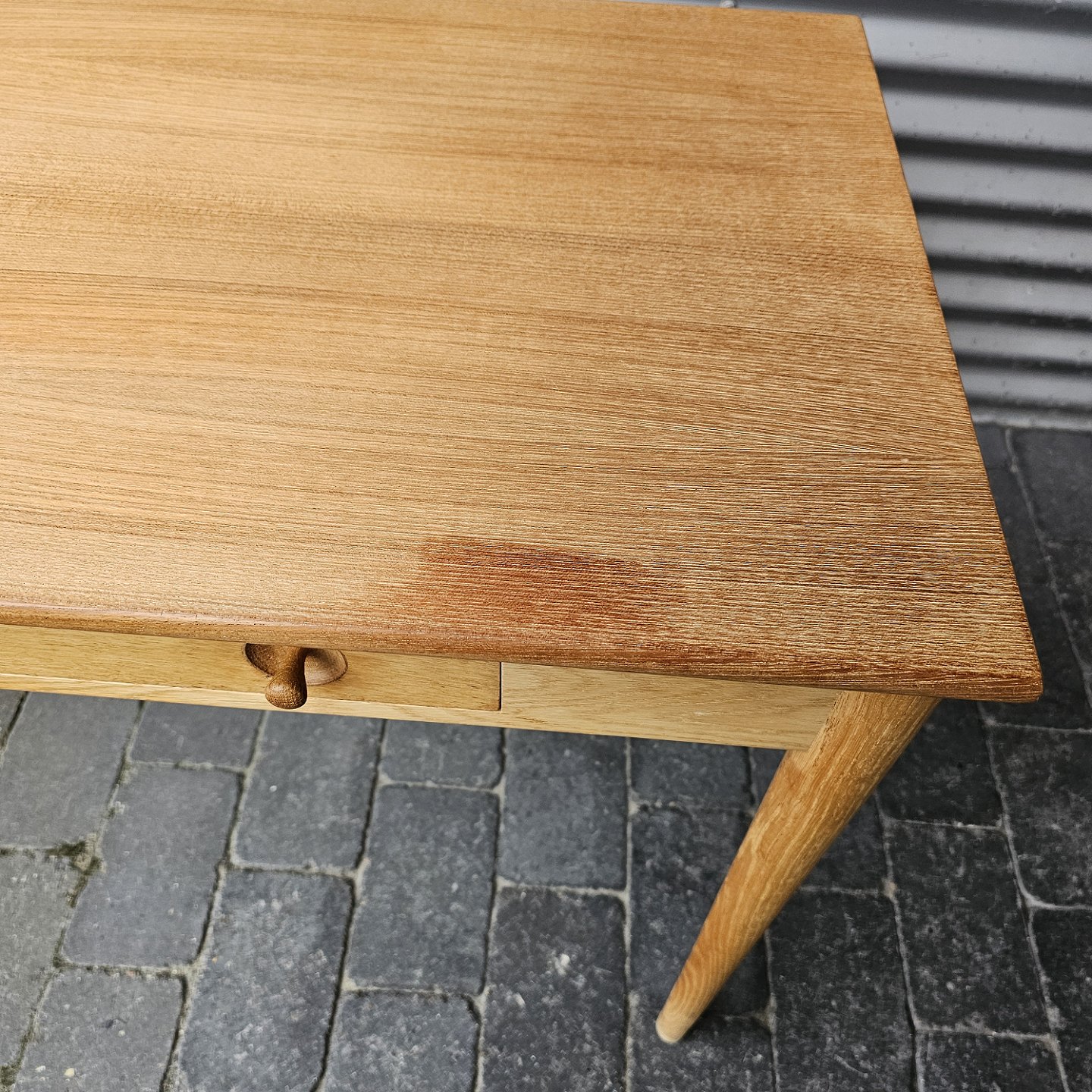 Skrivebord i teaktræ med stor skuffe og lås, også kaldet dameskrivebord