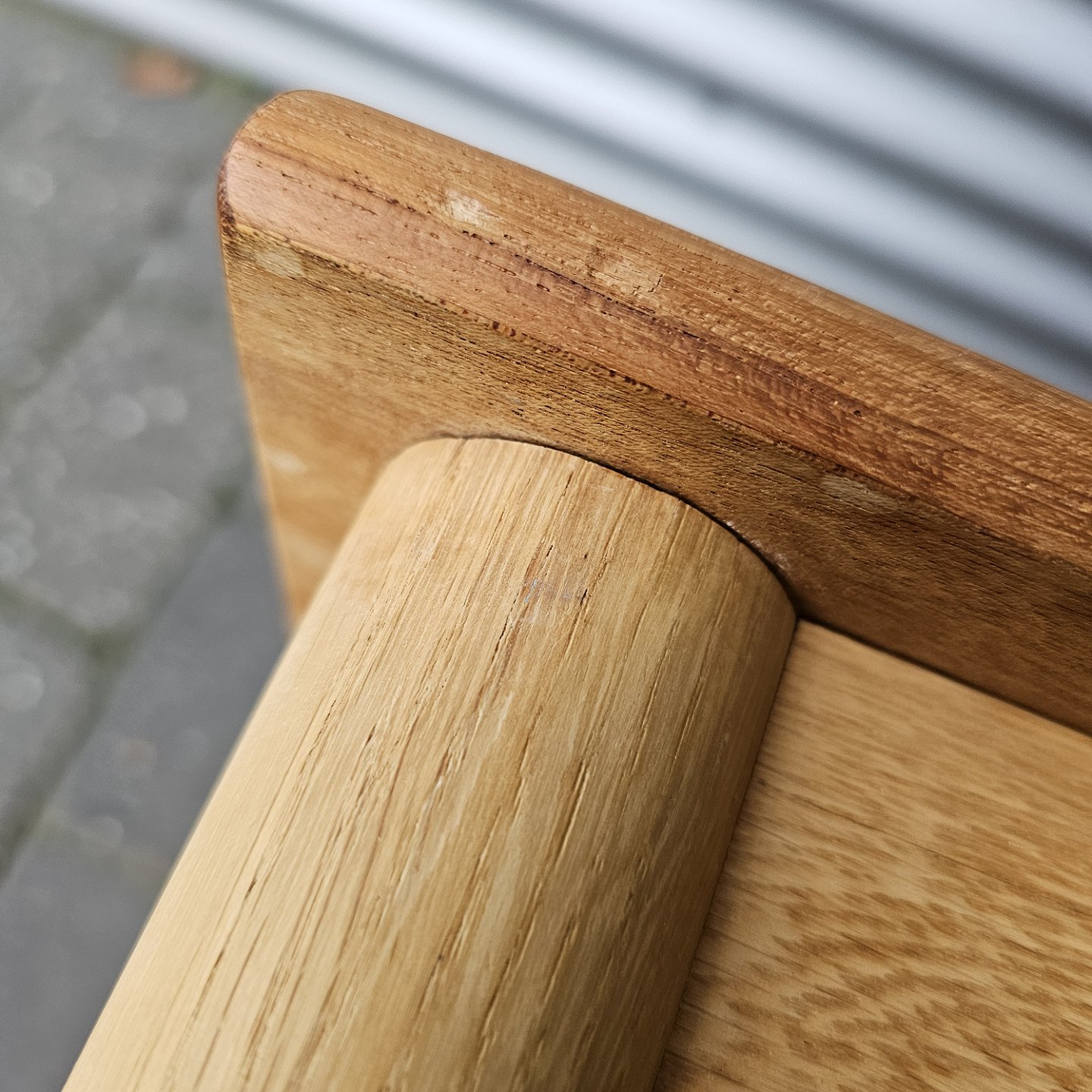Fremstår med diverse vandskader og pletter på overfladen