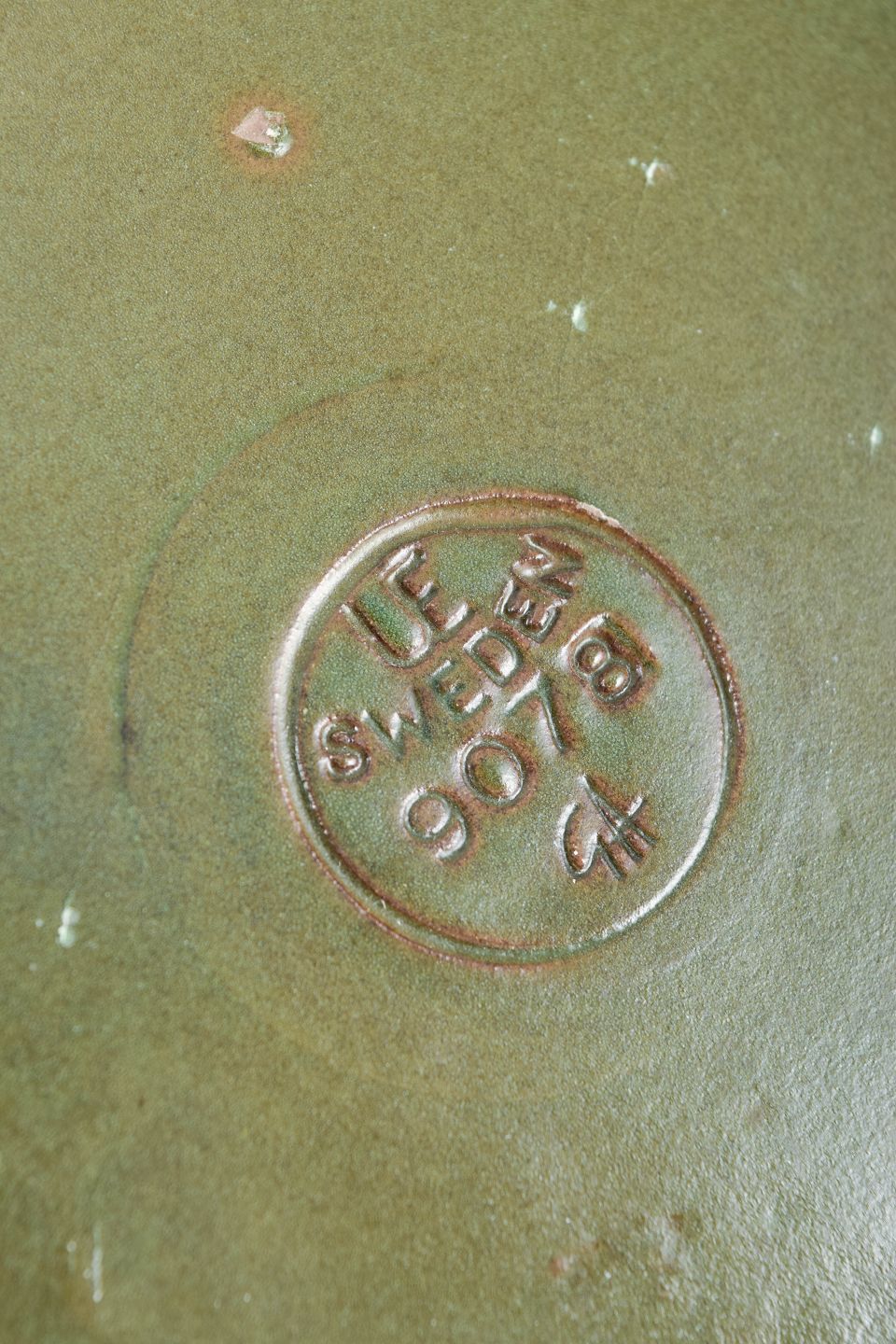 Sjældent, monumentalt keramisk værk af Göran Andersson for Upsala-Ekeby, udført i 1960’erne. Vase i cylindrisk form med levende håndmalet dekoration i grønne og blå nuancer samt et markant bælte af koncentriske cirkler med reliefvirkning. Et unikt stykke fra perioden – både i størrelse, udtryk og kunstnerisk kvalitet.