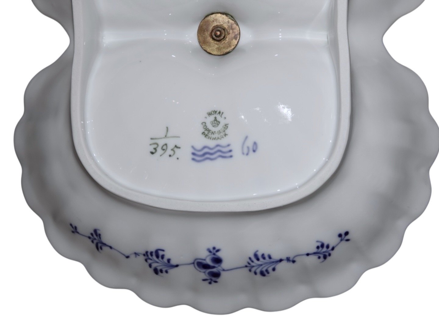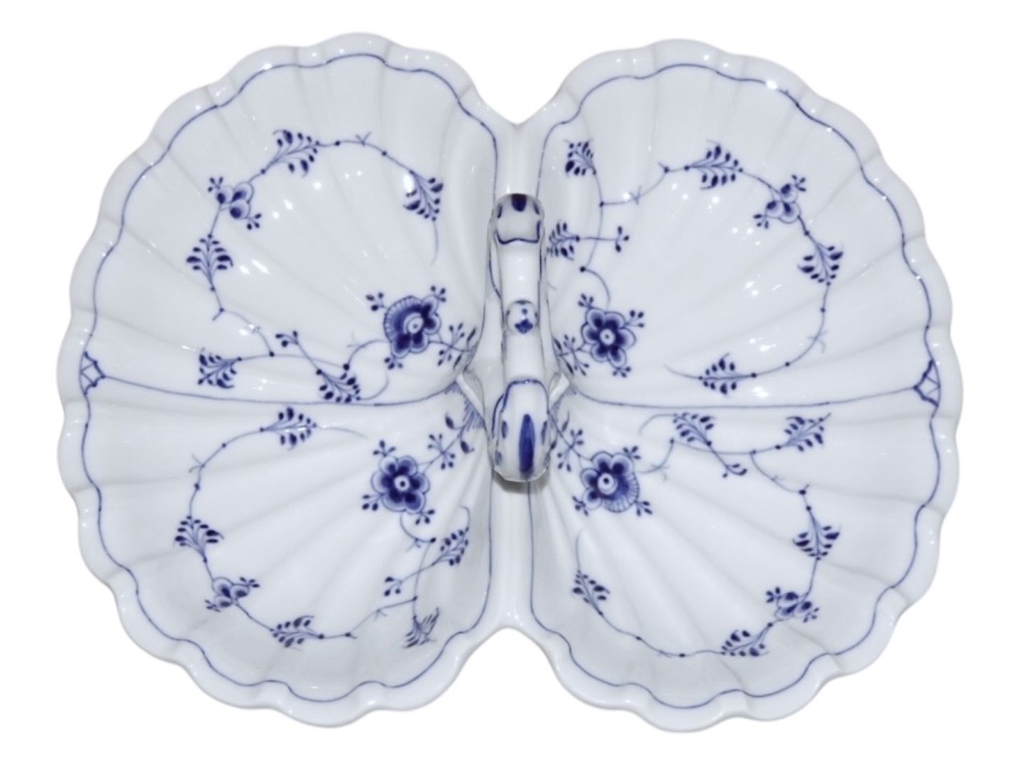 Royal Copenhagen Musselmalet Riflet, to-delt cabaretfad med hank.