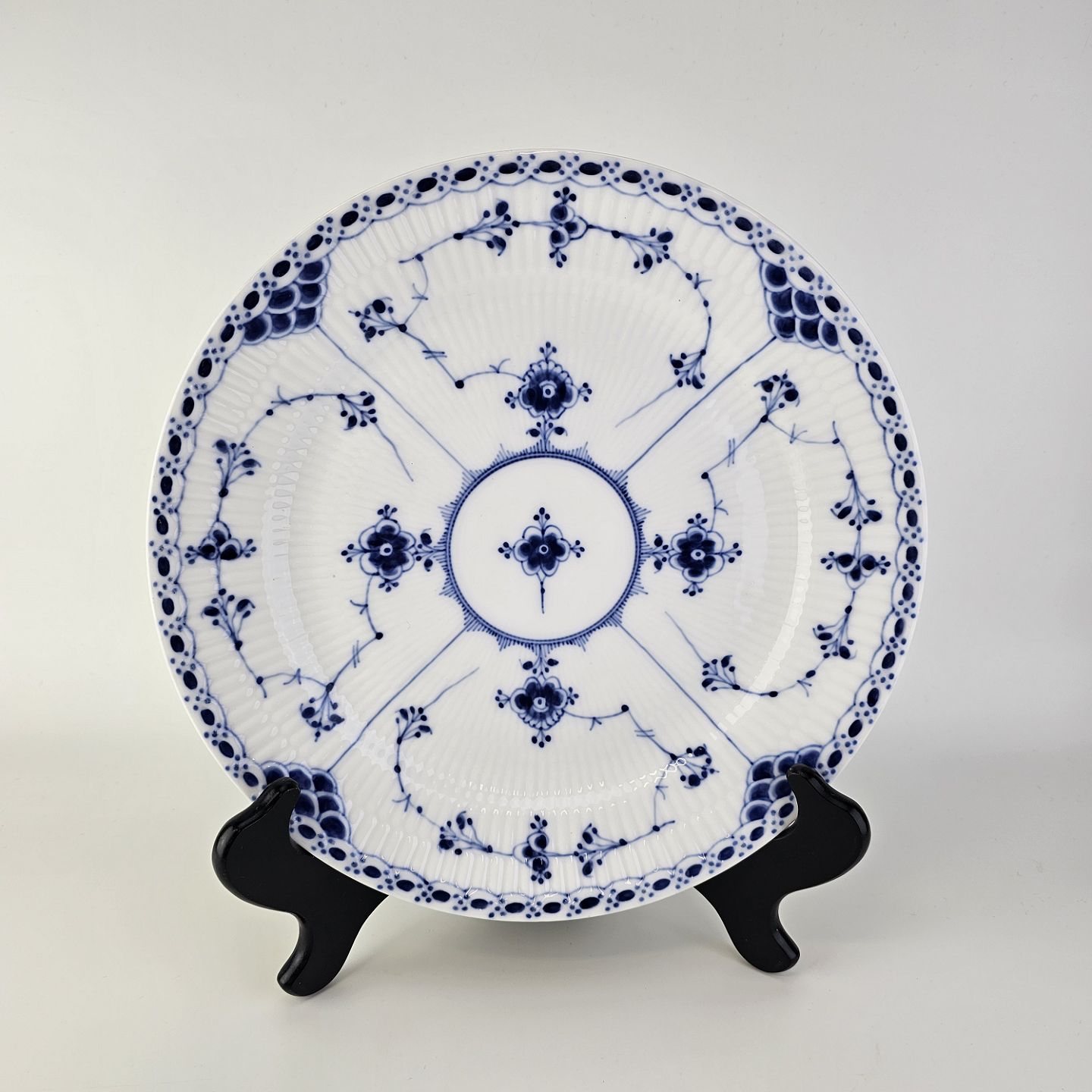 Flad middagstallerken i kongeligt porcelæn fra stellet Musselmalet Halvblonde