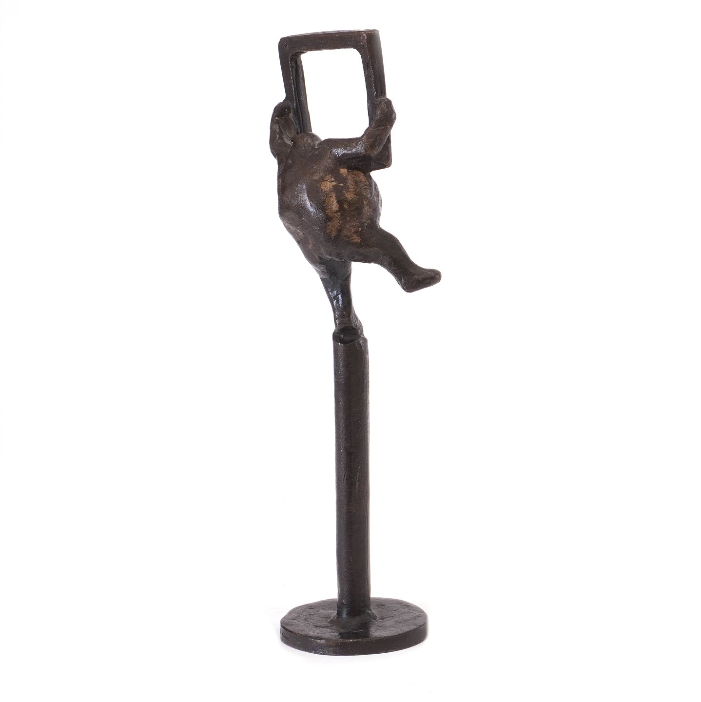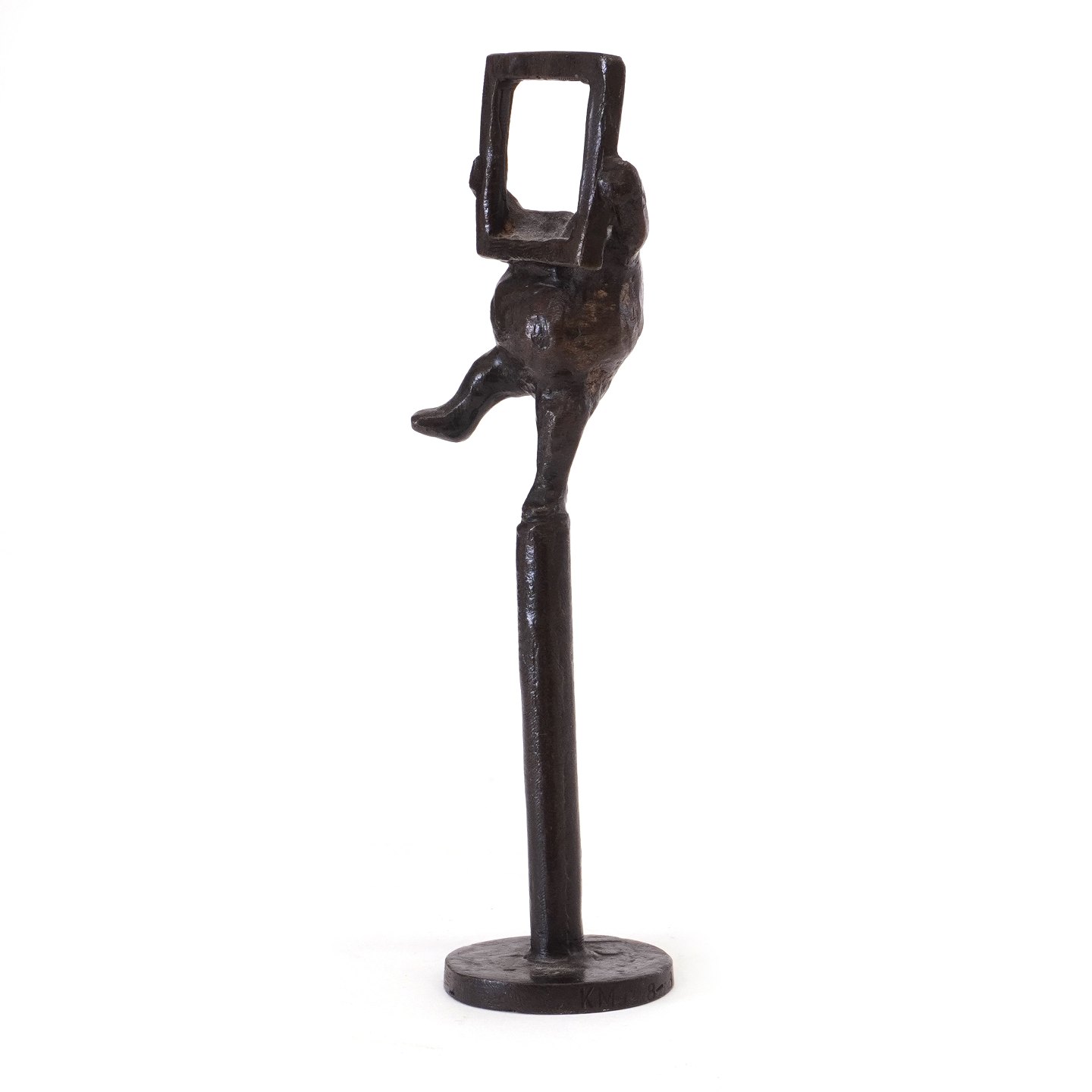 Keld Moseholm bronzefigur i form af mand med ramme. Signeret. H: 15,5cm