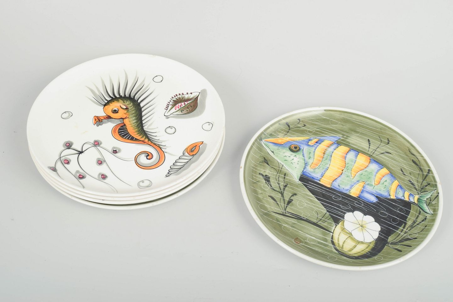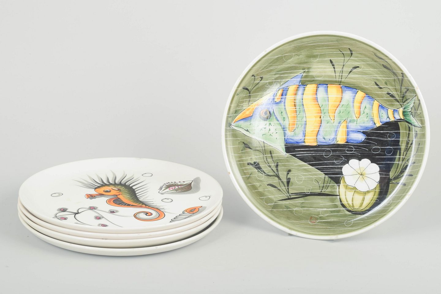 5 fajance tallerkener, 1960’erne.