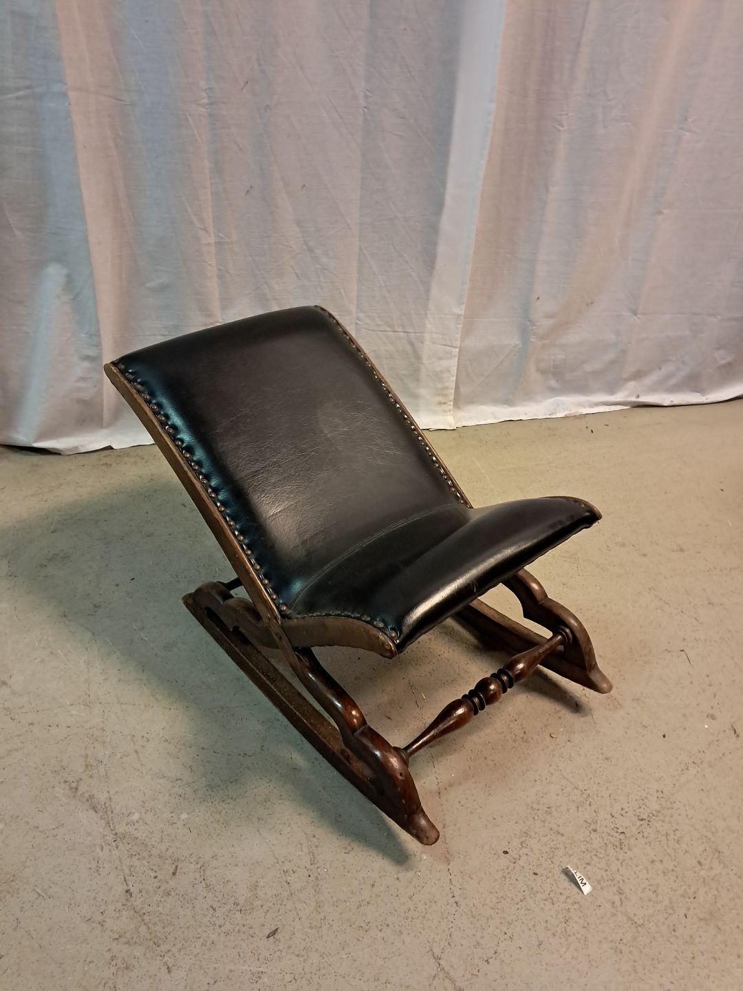 Skammel i bøgetræ og kunstlæder, fra 1920erne.