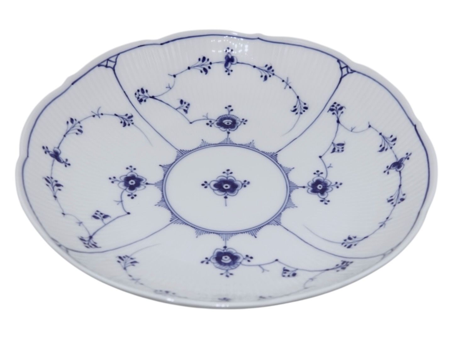 Royal Copenhagen Musselmalet Riflet, rund, lav skål med bølget kant.
