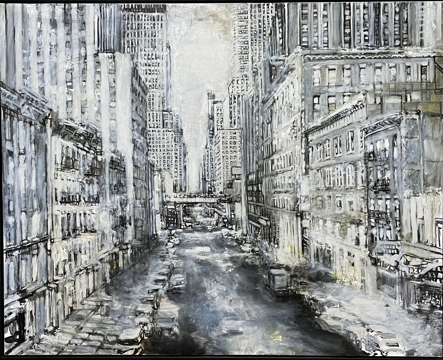 "Purple Appearance" Stort flot oliemaleri, monteret i sort svæveramme.