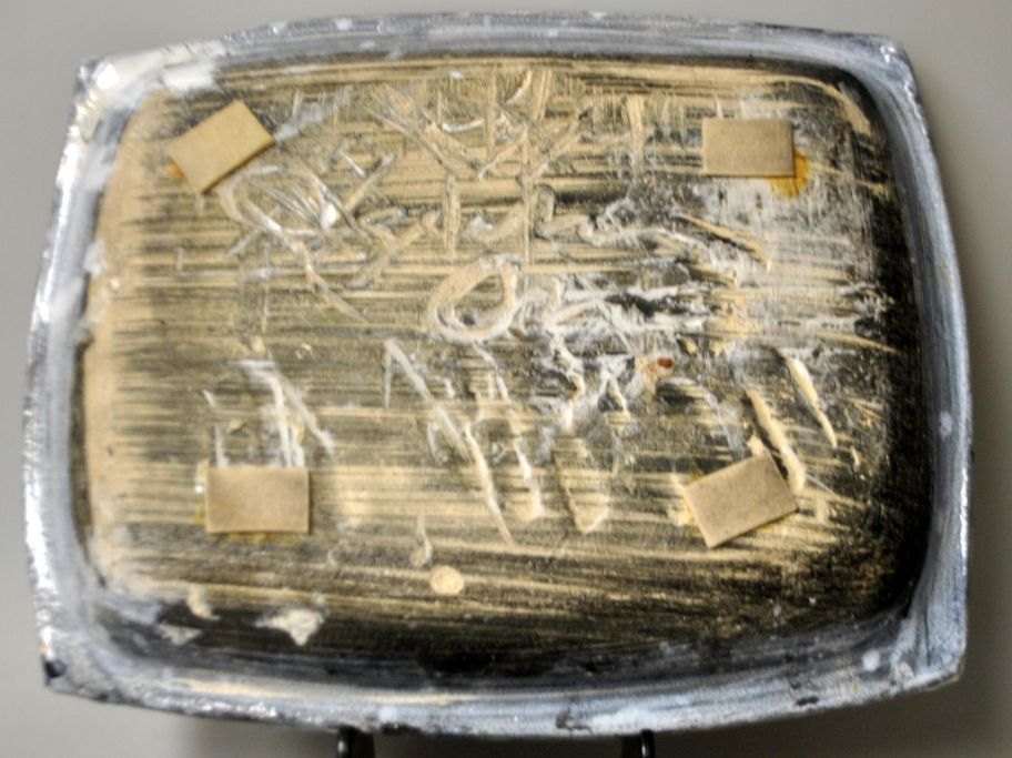 Hagedorn-Olsen, Jeppe (1929 - 2011) Danmark: Fad. Glaseret lertøj. Glasur i hvidt, blåt og sort. Signeret. 29 x 23 cm.