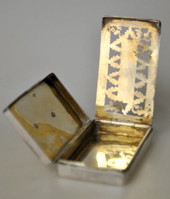 Carl Christopher Rode (1826 - 1902) Åbenrå, Denmark: Silver scent box. Stamped with master's mark and town seal. Inside gilded and lattice with acorns and oak leaves. 7.5 x 4.5 x 1.5 cm. Weight: 68 grams.