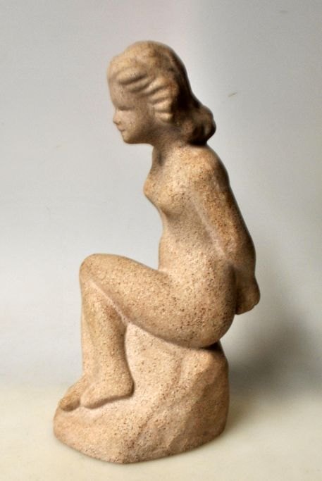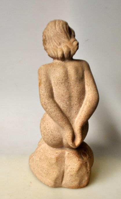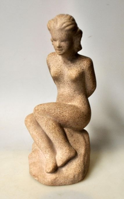 Rasmussen, Ove Fritz (1911 - 1973) Danmark: En siddende nøgen kvinde. Sandstensfigur. Signeret. H.: 24 cm.